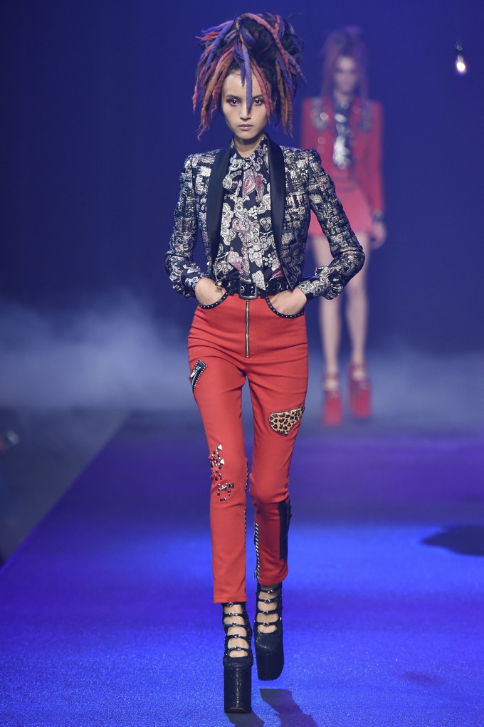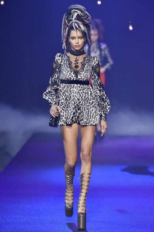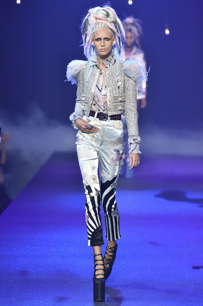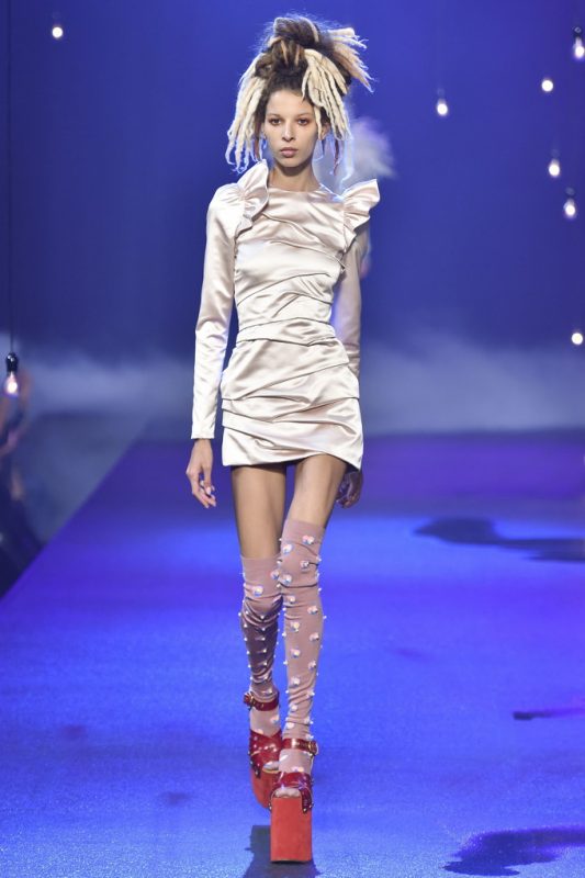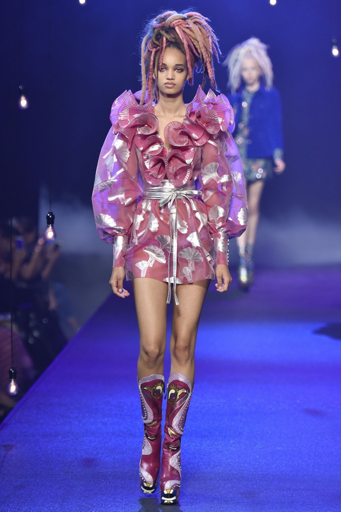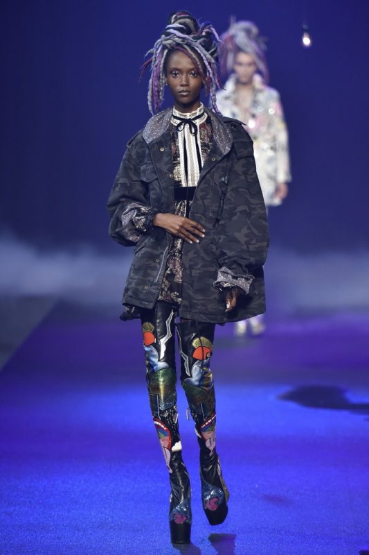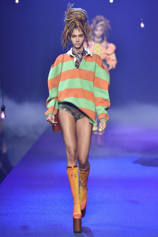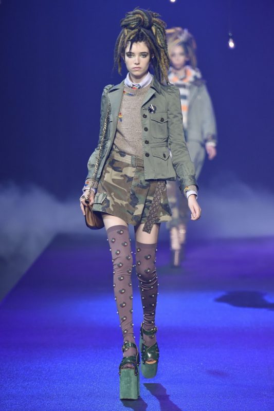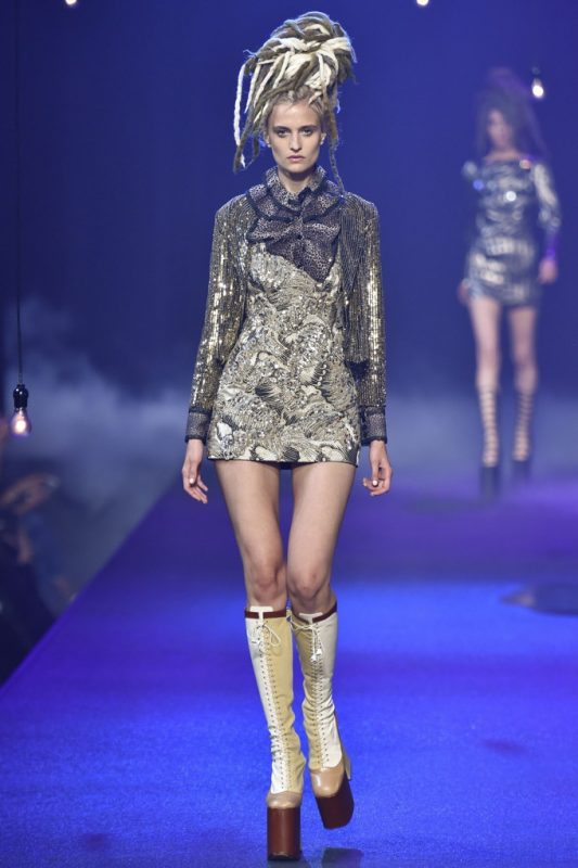 Holy hair! Guido Palau was working hard this season on the ‘dos for Marc Jacobs. Models sported piles of candy colored dreads in knotted masses on their crowns all the while marching on top of what looked like 8-inch platforms. Burning Man chic meets Tank Girl? If Lori Petty was remaking the ’90s cult-classic she might tap into Jacobs’ Spring 2017 collection. References ranged from steam punk Victoriana to David Bowie Ziggy Stardust-inspired outfits to Venice Beach stoners to rock n’ roll. Leave it to Marc Jacobs to close out New York Fashion Week marching to the beat of his own drum. The editorial possibilities for these pieces are endless.