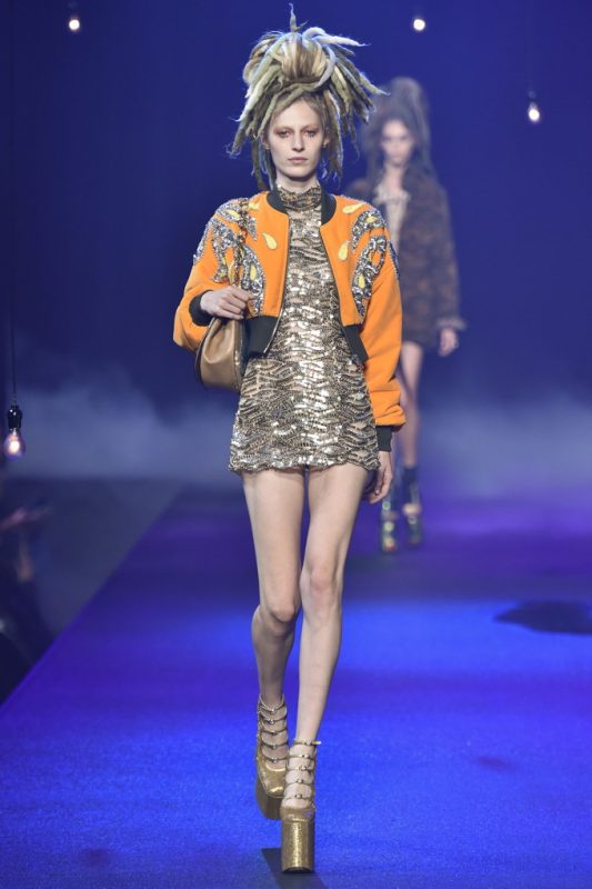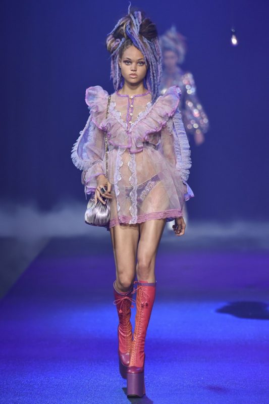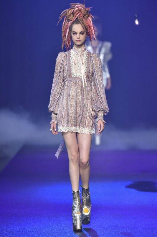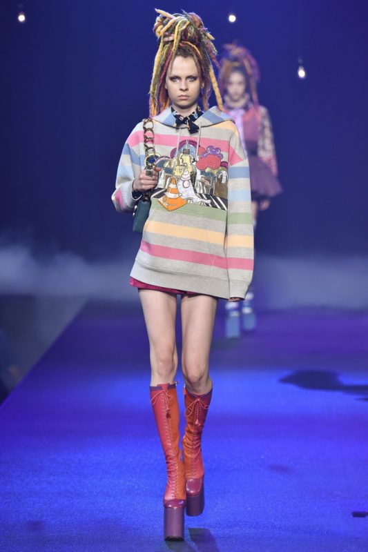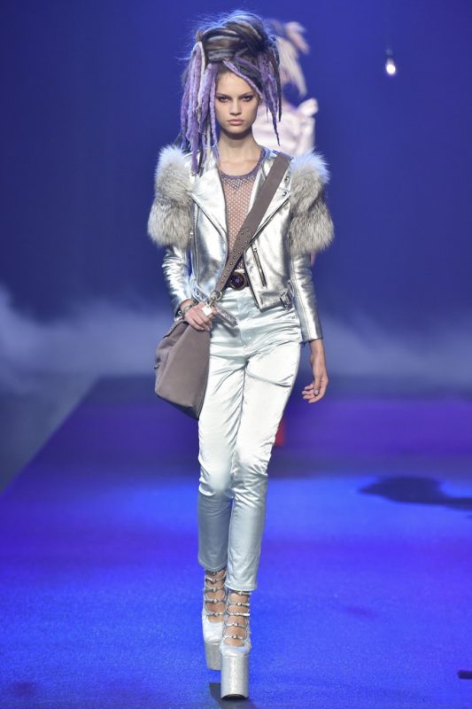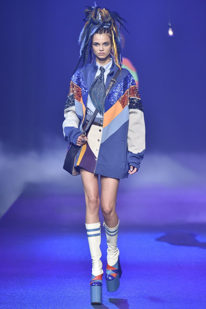 This season’s show took place at the Hammerstein Ballroom, which further hammered home the idea that Jacobs’ was inspired by all of the club kids, music festivals goers, and ravers. Last season’s Emily Strange goth girl has turned into this season’s Lana Wachowski at an Acid house rave. Few can translate the dregs of youth culture into high fashion the way Marc Jacobs can. Even the celebs front row pretty much summed up the references including Whoopi Goldberg, Sofia Coppola, Zosia Mamet, and Courtney Love. Miley Cyrus, where were you?