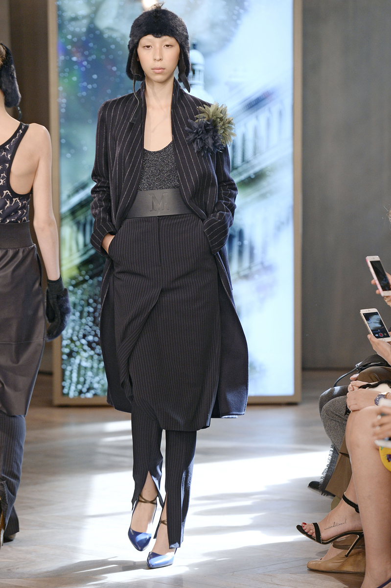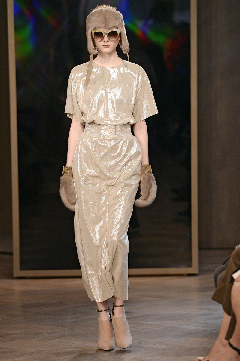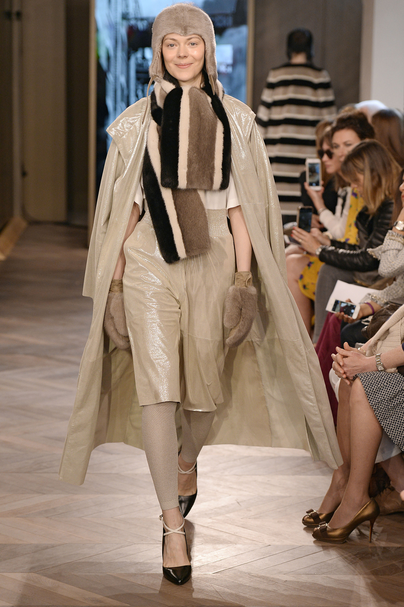 Ann Whitam‘s novel, Boxer Handsome, was apparently one of Max Mara creative director Ian Griffiths’ inspirations for the Resort 2016 show, but this boxer-inspired collection also conveniently debuted not long after the much talked about Floyd Mayweather vs. Manny Pacquiao fight. We suppose acclaimed literature such as the former serves as chicer inspiration. The boxing influence translated as furry hats and gloves that mimicked boxer mitts and helmets. Then, there were the oversized leather boxer shorts, tank tops, wide belts, and coats draped like boxer robes.