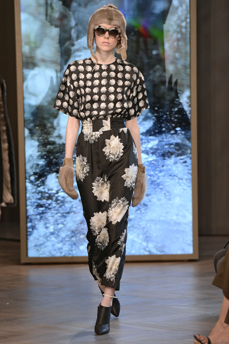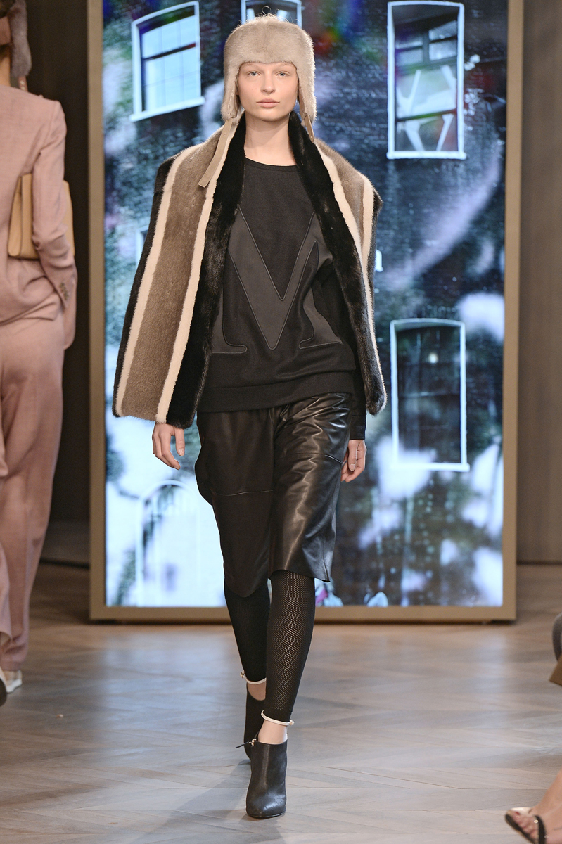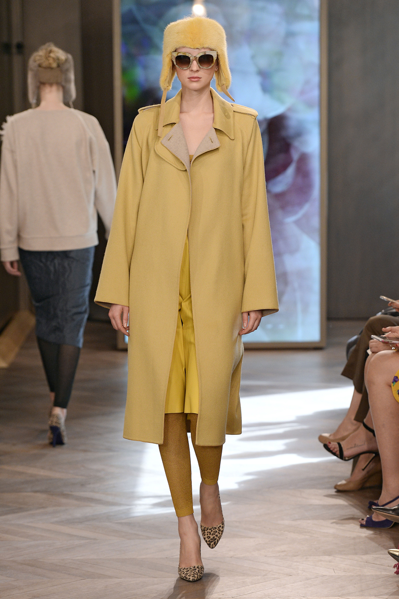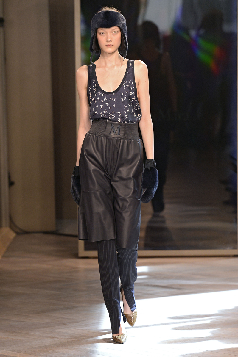 Ann Whitam‘s novel, Boxer Handsome, was apparently one of Max Mara creative director Ian Griffiths’ inspirations for the Resort 2016 show, but this boxer-inspired collection also conveniently debuted not long after the much talked about Floyd Mayweather vs. Manny Pacquiao fight. We suppose acclaimed literature such as the former serves as chicer inspiration. The boxing influence translated as furry hats and gloves that mimicked boxer mitts and helmets. Then, there were the oversized leather boxer shorts, tank tops, wide belts, and coats draped like boxer robes.