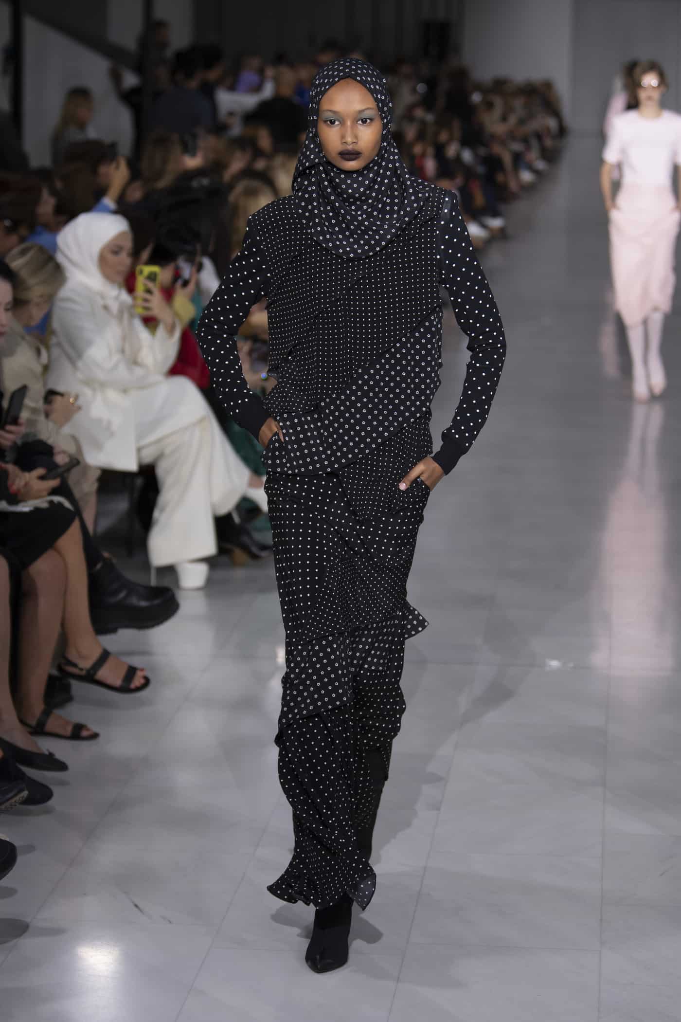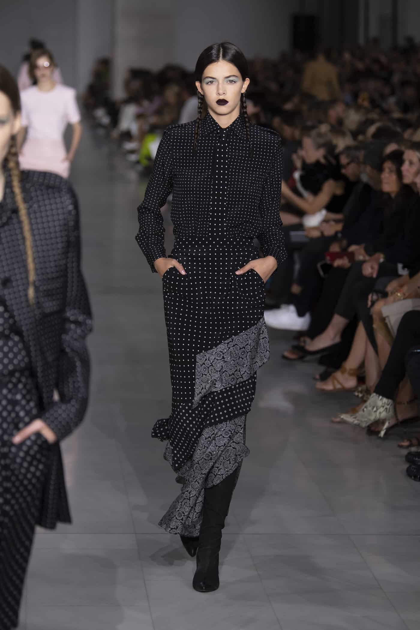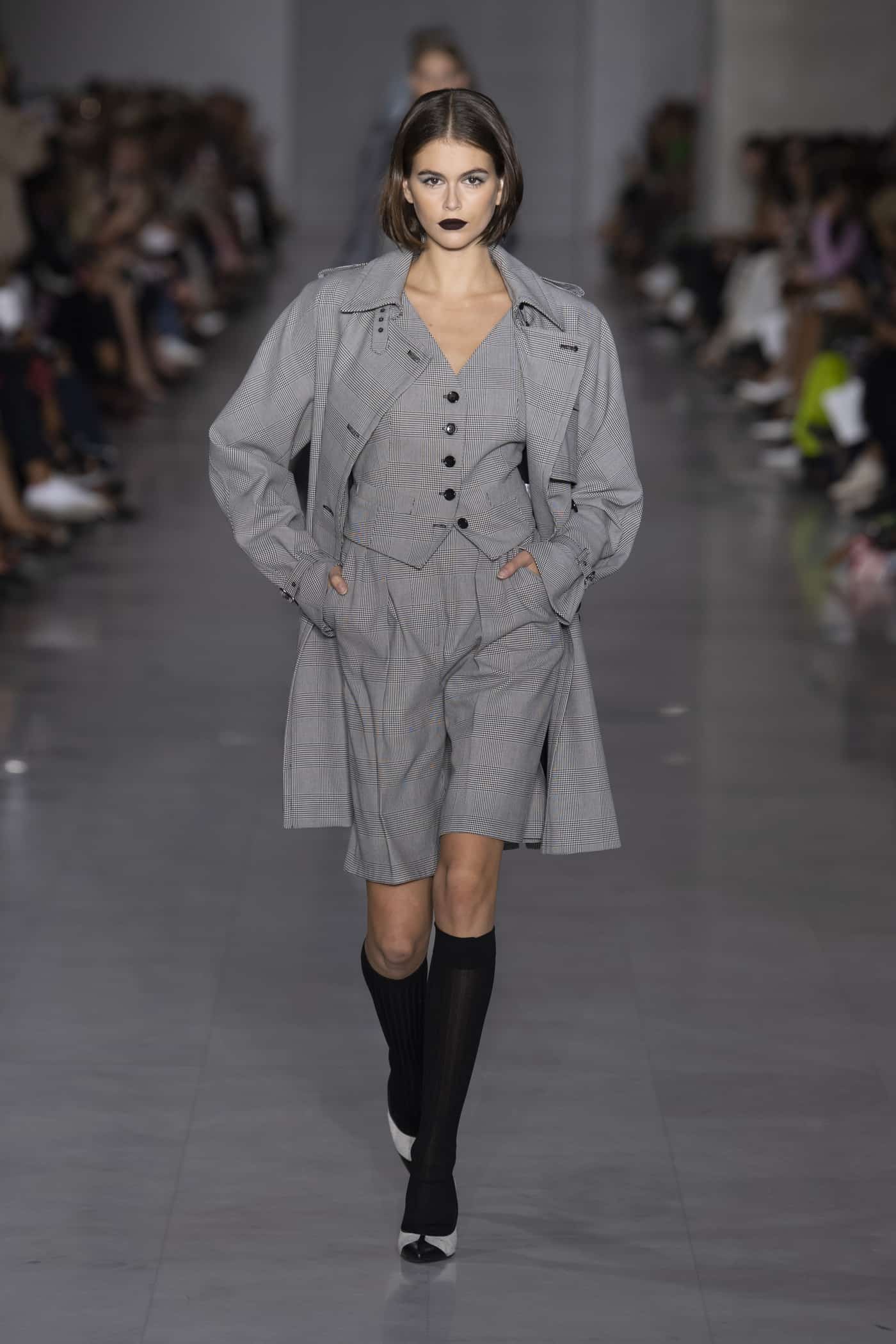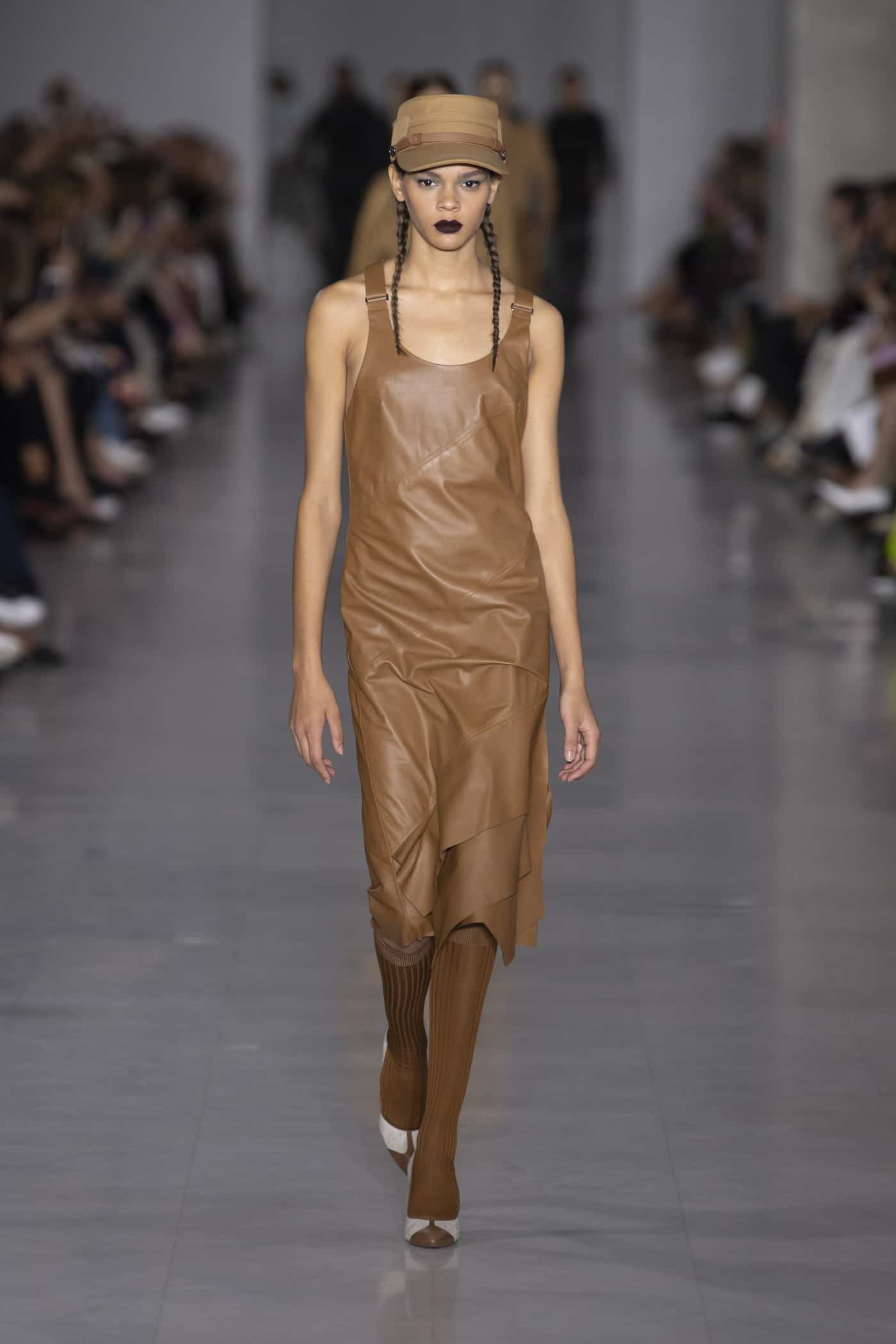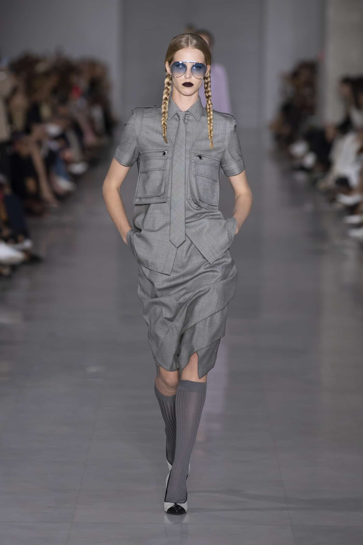 “Modesty Blaise is the new 007,” said the brand in their show notes. “She admires Bond’s elegance, but questions his modus operandi. Bumpy car chases, shootouts and cataclysmic explosions – dangerous, dirty and unnecessary, she thinks. With a strategic hint and a well laid trap, she maneuvers her adversary into surrender. No need for a gun then, but the holster makes for a very stylish design detail.”