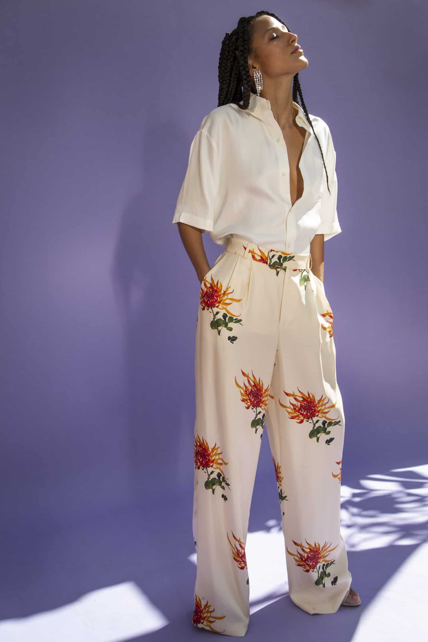 We were very lucky that our first girl to wear Finney was Kristen Stewart and the first guy was Andrew Garfield, so the response has been quite quick and [the brand has been] picked up across the press. The retailers tell me there’s not one piece that isn’t selling—some people love the Hawaiian and chrysanthemum prints, some people like the tonal khakis and caramels.