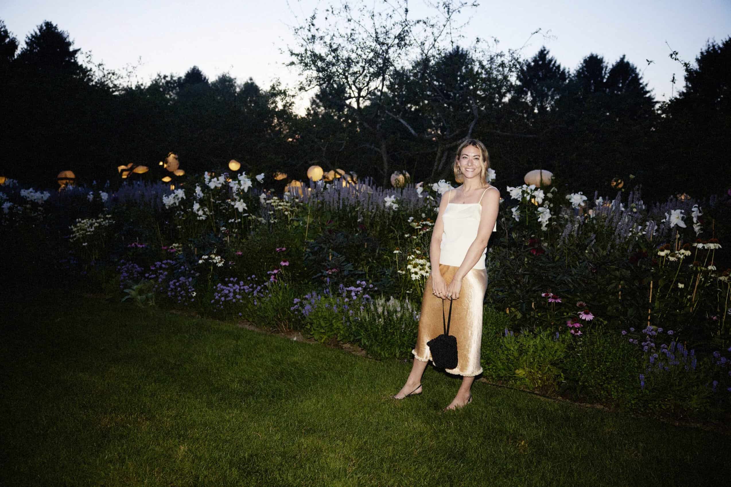 The garden dinner took place at the private home of Susannah Lachs and Dean Adler, with a tablescape set up underneath the trees, illuminated by Noguchi-inspired lanterns overhead. The menu for the evening was custom-created by wunderkind New York-based chef Flynn McGarry, and included favorites like grilled wild bass, squash blossom focaccia, tomato salad, and summer beans, with sweet lavender Madeleines to seal the deal.