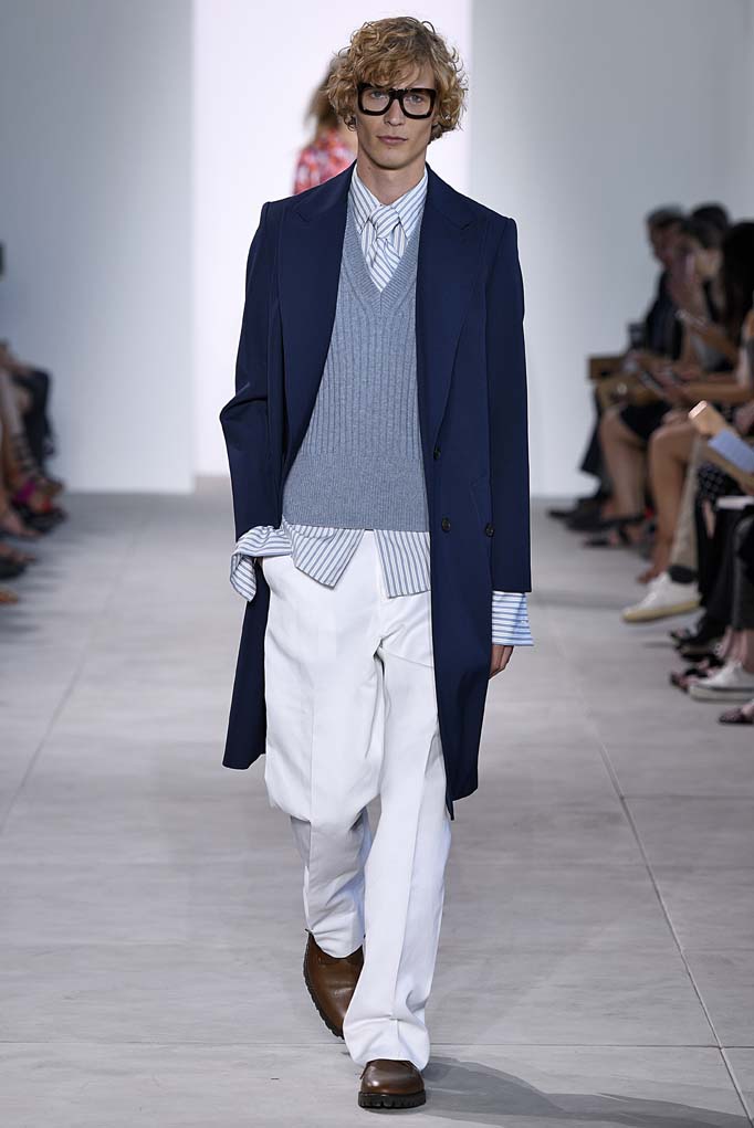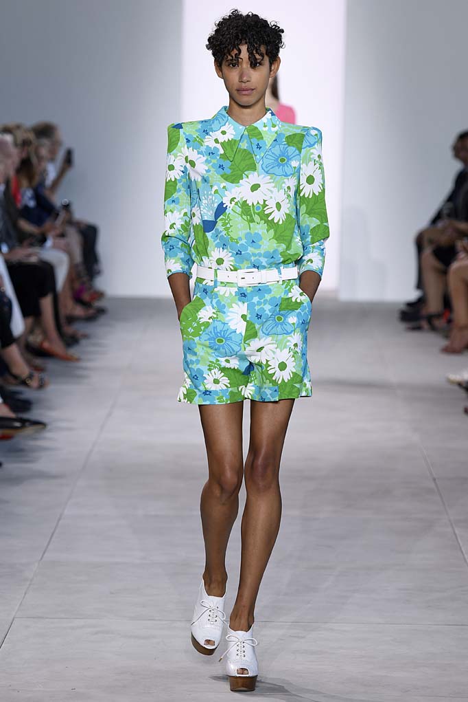 Michael Kors is forever the optimist, and thank heavens for that. A swinging ’60s undercurrent ran through Michael Kors Collection, with brightly hued trenches and double-breasted coats rounding out an intensely covetable group of outerwear whose utility will extend far beyond spring. Betty Draper (circa Mad Men’s first few seasons) would feel totally à l’aise in the retro floral dresses and the punchy pink overcoat, but in Kors’ ultra-now silhouettes, they’re fully modern. Wooden-soled lace-up platforms, new-shape aviators, cross-body bags, and frilly clutches dominated the killer accessories offerings. We’re starting to become dependent on Michael Kors’ positive vibes—not like that’s a problem!