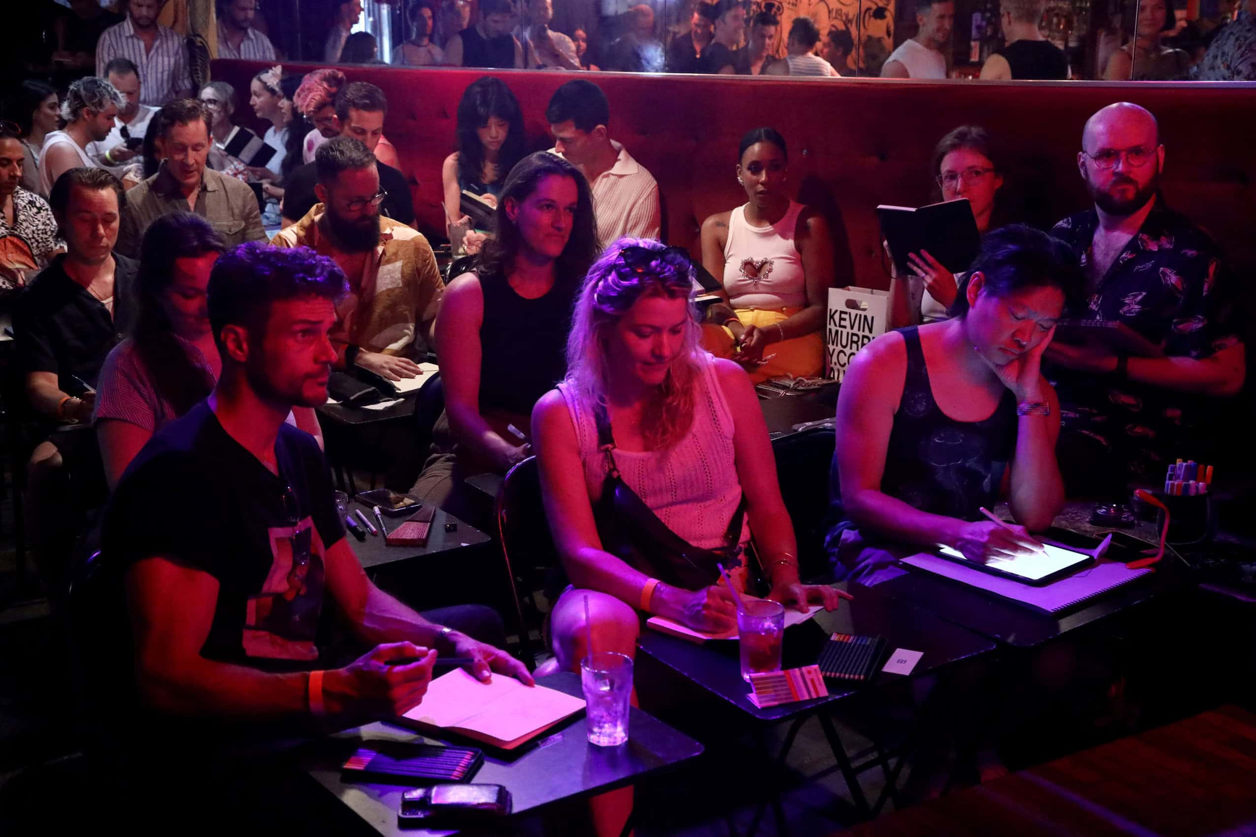 The evening was hosted by artist A.E Kiernan and invited attendees to try their hand at drawing a live model while having a sip of their favorite adult beverage. MOKESKINE once again supplied notebooks and materials for guests to give their best shot at drawing Cumming, who is also the co-owner of his namesake venue. The best drawings, chosen by Cumming, were awarded gift certificates from MOLESKINE, and we even gave kudos to the “Best Effort” artist, who gave it their best shot. (The only bad artist is the one who doesn’t try!)