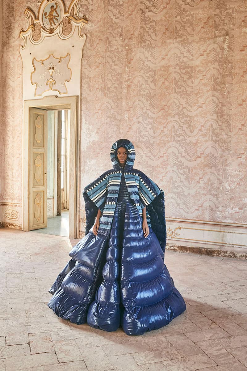 Designer Pierpaolo Piccioli created his collection in collaboration with model and designer Liya Kebede. “I am after a balance of dreaminess, extravagance and soulfulness,” said Piccioli. “I involved Liya Kebede, who is an active supporter of African artisans with her label lemlem, in the process, creating something true to her, to Moncler and to my own sensibility. Connecting diversities is my idea of inclusive creativity.”