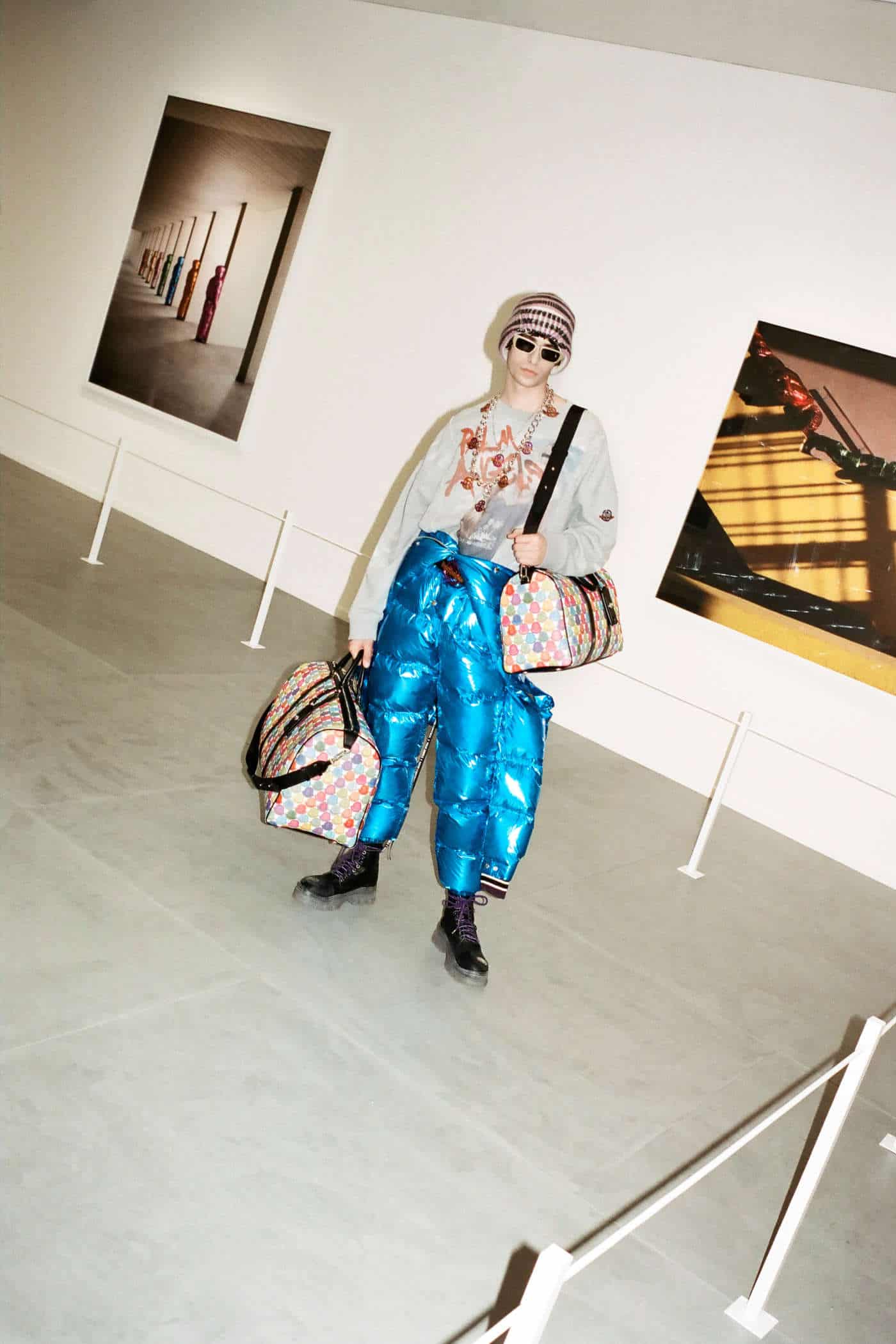For the women’s collection, designer Veronica Leoni reinterpreted the Moncler code in a layering of materials and shapes — bouclé wools, fishnets, bleached tartans, padded tailoring, fur, and knit mixed with nylon in unexpected and compelling combinations. “Moncler Genius stands for an eclectic, transversal, fluid way of doing fashion,” said Leoni. “The ultimate goal is being unique while in full consonance with the multifaceted touch of its philosophy.