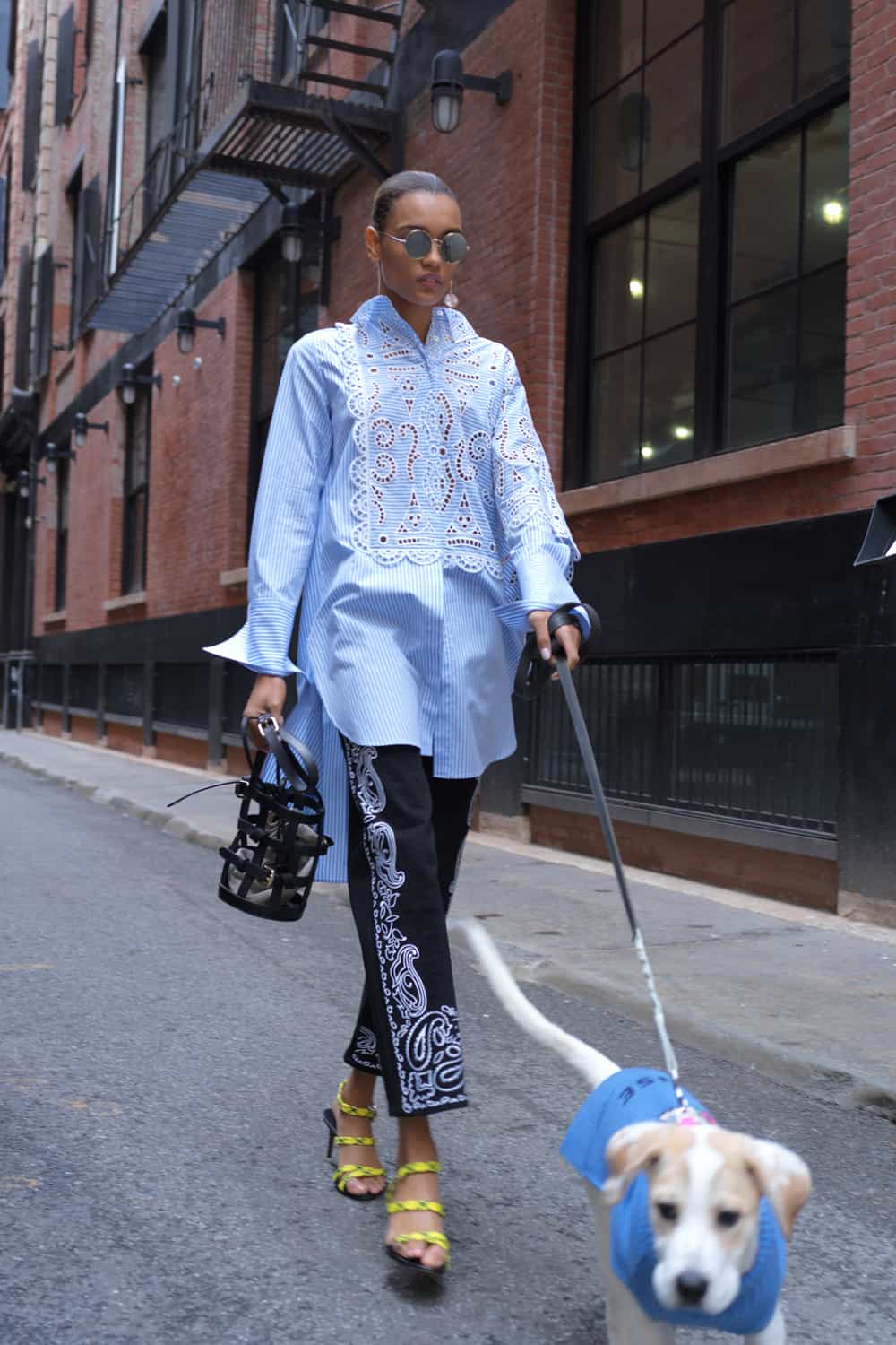The Pre-Fall collection and photo shoot are part of a larger collaboration between MONSE and six pet rescue organizations in the greater New York City area — Animal Haven, Best Friends Animal Society, Bideawee, Rescue City, Rescue Dogs Rock, and Social Tees — to promote the fostering and adoption of rescue dogs. The collaboration highlights over 30 dogs from the local organizations, each look featuring a pup in need of a loving home.
