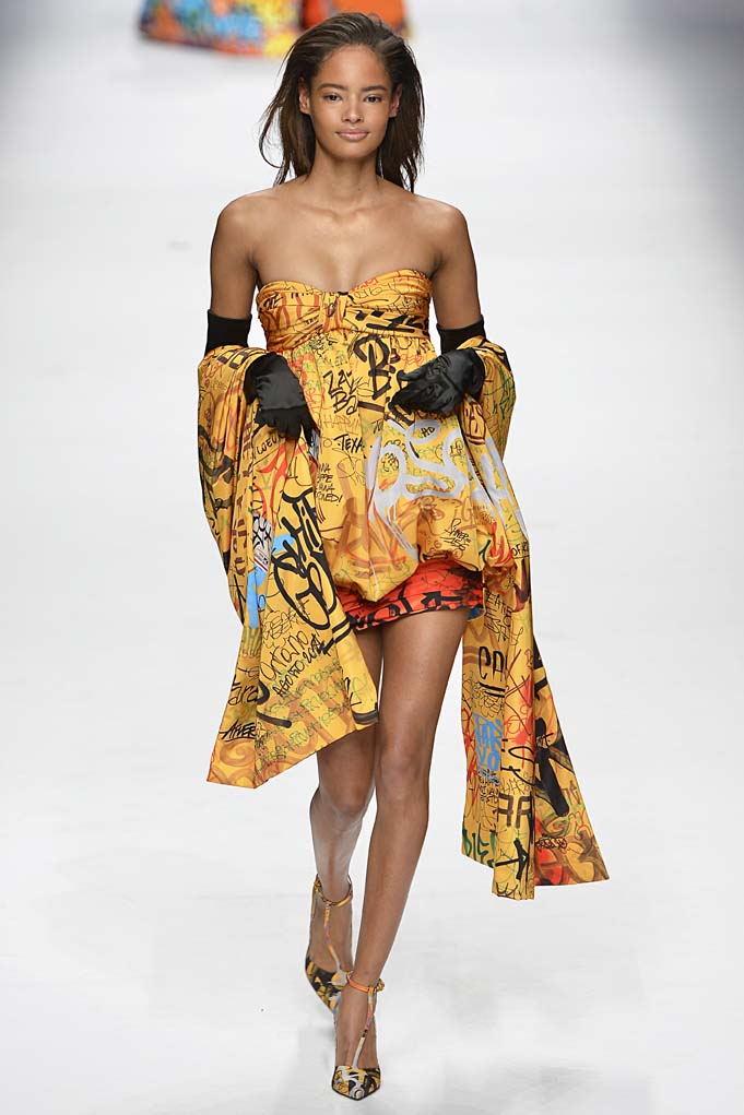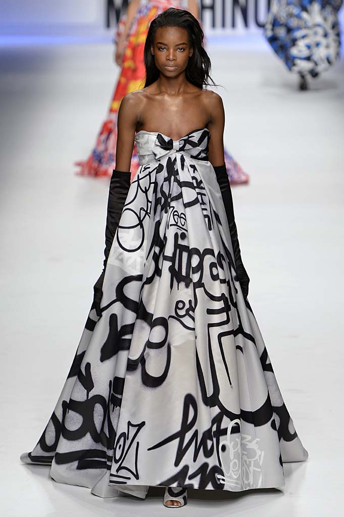 With each collection he creates chez Moschino, Jeremy Scott further proves he was born to helm this maison. And it certainly looks like he’s having a whole lot of fun while doing it. This time around, there were a ton of themes in his collection, with nods to the Looney Tunes, a colorful ode to the ‘80s, and plenty of teddy bear motifs. Even graffiti took a spin on the runway, adorning chubby fur coats and dramatically plunging evening gowns. Pushing that concept even further: a Moschino-branded spray paint can, fashioned into a purse with a chain strap.
