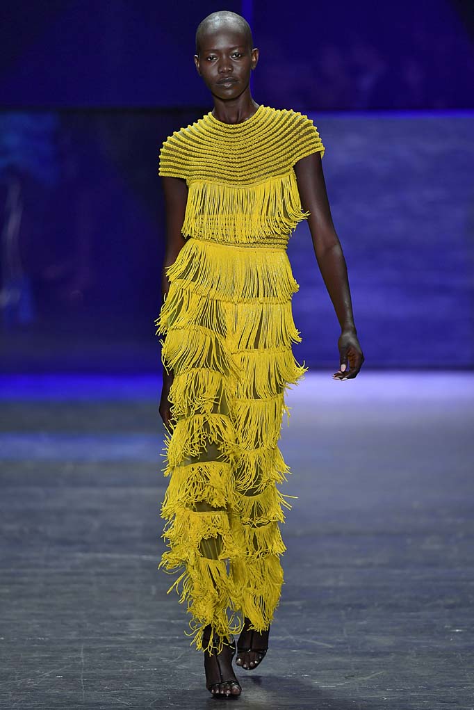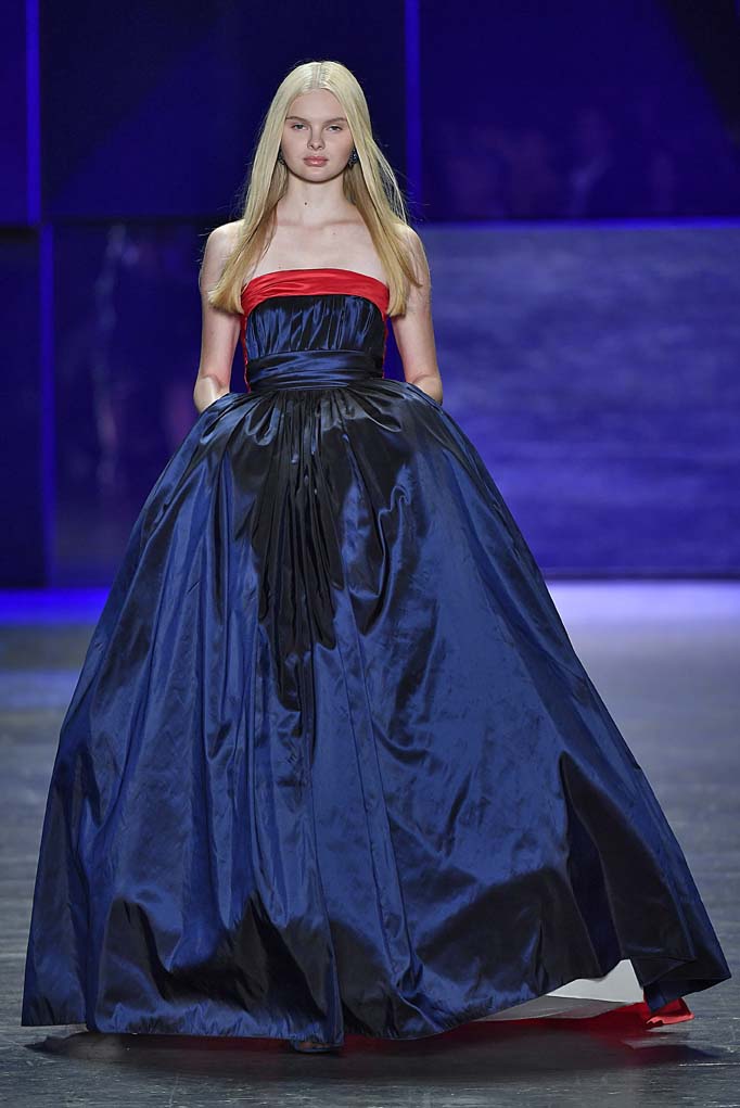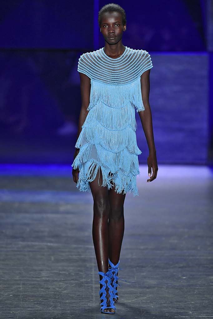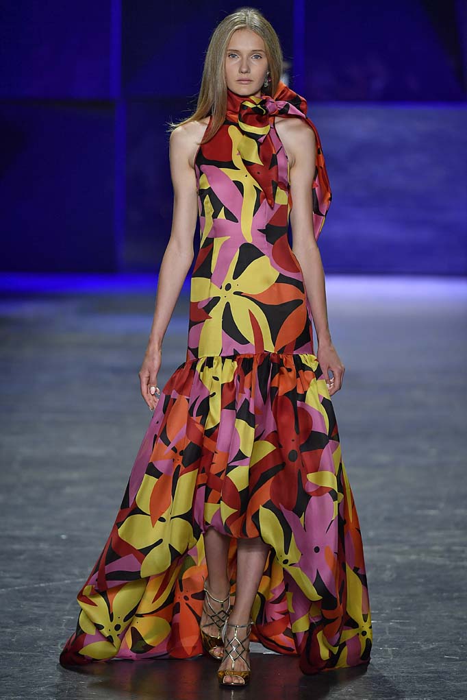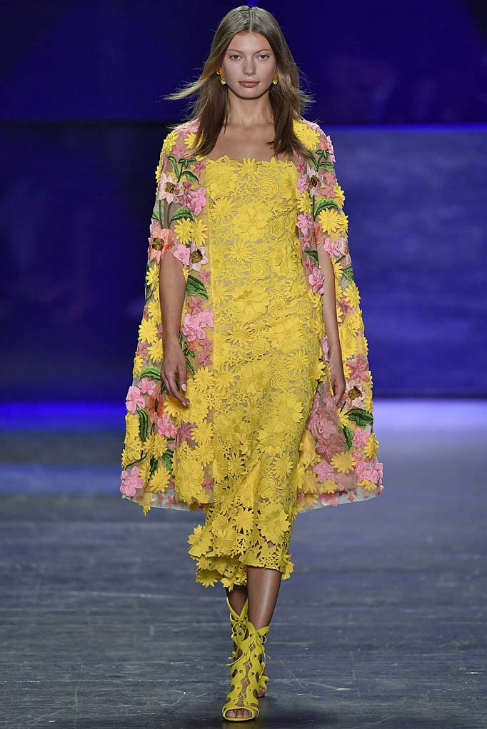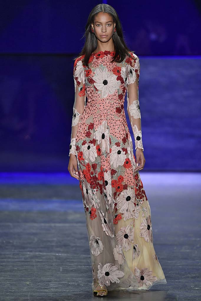 Naeem Khan showed a range of daytime and evening-wear looks at his Spring/Summer 2017 runway show. Pal Iris Apfel and actress Christina Hendricks came out to support the designer, who’s known for his ornate and intricately detailed gowns. The show started out with pieces that seemed to pay homage to his days at Halston Heritage, but then he quickly progressed into the embellished and ultra glamorous evening wear looks that scream Emmy’s, just in time for this weekend’s award show. The beaded floral pieces and the brightly hued mini dresses destined for a night of salsa dancing will also find their way into the wardrobes of women in Khan’s new hometown of Miami.