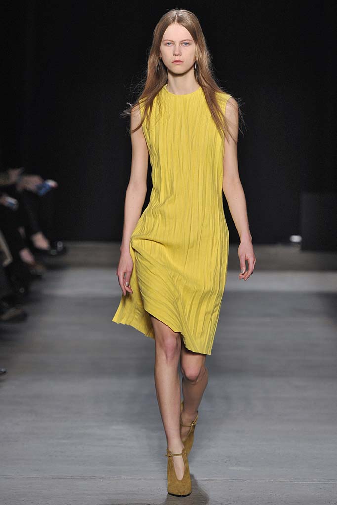 A pair of gesso plissé wrap coats completed the cozy chic vibe and some metallic paper silk dresses were about as loud as Narciso is willing to go. There’s nothing too out of the box at a Narciso show, but when a simple sweater or silk dress is cut just right it can make all the difference in the world to a woman of discerning taste and that’s why his elegant but understated clientele (like front row attendee Claire Danes) keep coming back for more.