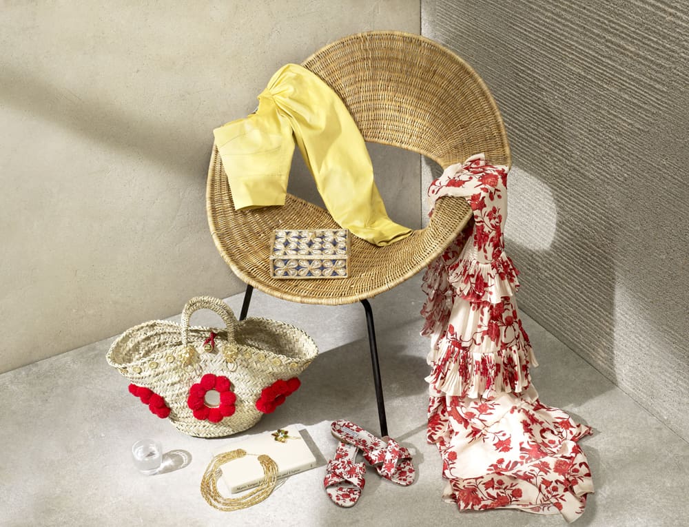 Johanna Ortiz’s capsule, Cartagena Nights, features ready-to-wear and swimwear, as well as a shoe collaboration with Tabitha Simmons. Esteban Cortazar created six Flamenco-inspired pieces, while The Lazy Poet crafted sustainably made pajamas. Carolina Santo Domingo and the Muzungu Sisters offered two different takes on handbags inspired by tradition. Verde Limon has the swimsuits covered, while Silvia Tcherassi has bold dress options. Hunting Season came up with some chic leather pieces, while espadrille brand Castañer teamed up with Mercedes Salazar on a line of shoes. There is also jewelry from Salazar, Mallarino, and Bibi Marini, and some pretty gorgeous headbands by Magnetic Midnight.