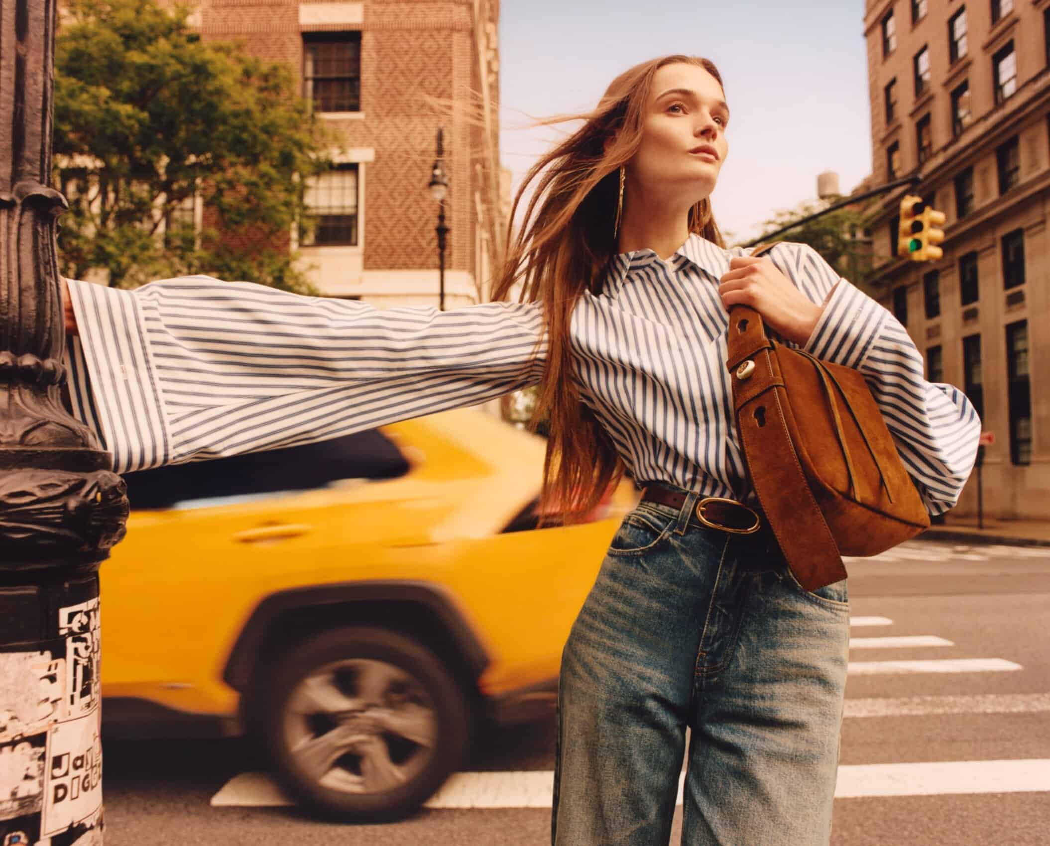 Autumn’s arrived early for Tory Burch! The brand’s just revealed its new Fall 2025 campaign, photographed by Jamie Hawkesworth throughout New York City. The shoot finds models Lulu Tenney, Selena Forrest, Hejia Li, Ida Heiner, and Nora Attal strolling through the city streets, lounging across apartments and park benches, and hailing cabs while on the go. Naturally, they’re outfitted in Burch’s latest designs, including its new Kira Turnlock shoulder bag, pierced totes and toe-loop sandals, midi skirts, blouses, versatile knits, and denim—plus a revamped take on its signature Reva Travel ballet flats and Romy satchels. You can discover the first launch of Burch’s Fall collection now on ToryBurch.com.