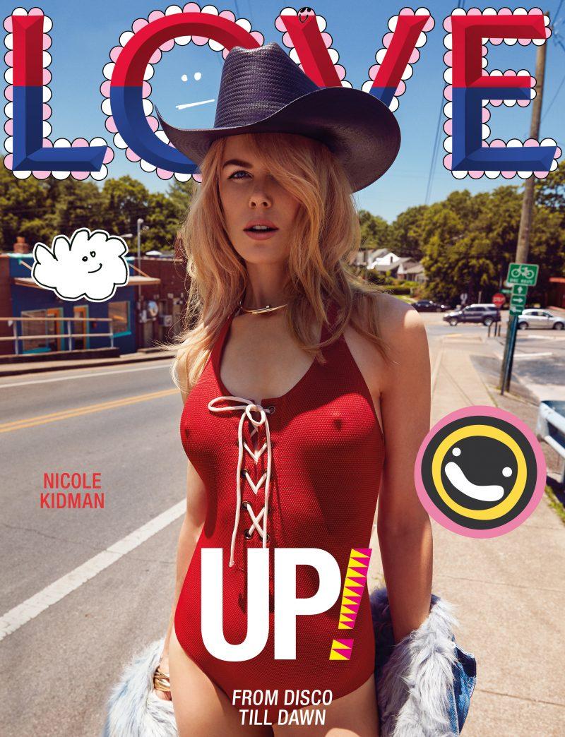 Nicole Kidman shows off her country side in cowboy hats, chaps, and an ultra sexy all-American swimsuit that shows off her impeccable figure in the new issue of Katie Grand’s Love magazine. The cover story, which was shot by photographer Carin Backoff and styled by Sally Lyndley, shows off Kidman in unexpected laid-back attire. Despite the fact that Kidman lives in Nashville with her country singer husband Keith Urban, we never could quite see her as the cowgirl type until now! ‘That’s crazy what we did” said Kidman of the experience in a press statement. “Little denim shorts, right? I thought about that afterwards. I was like, what was I doing? I lost my mind!”