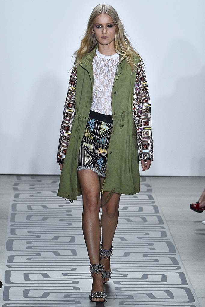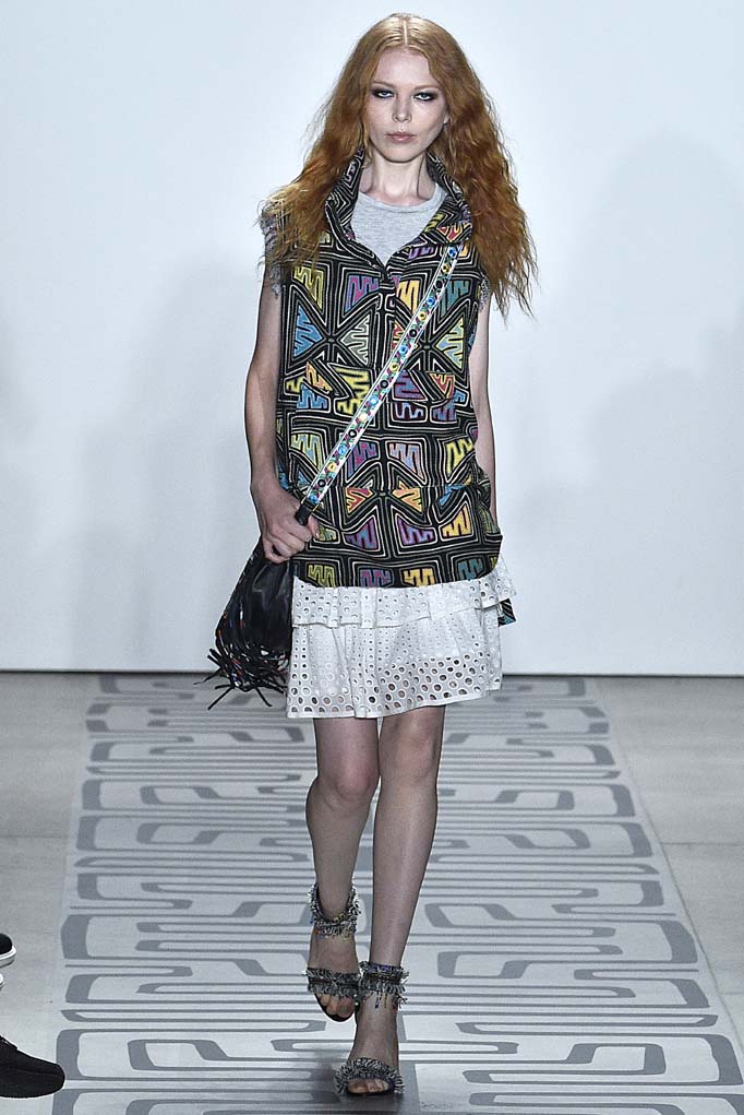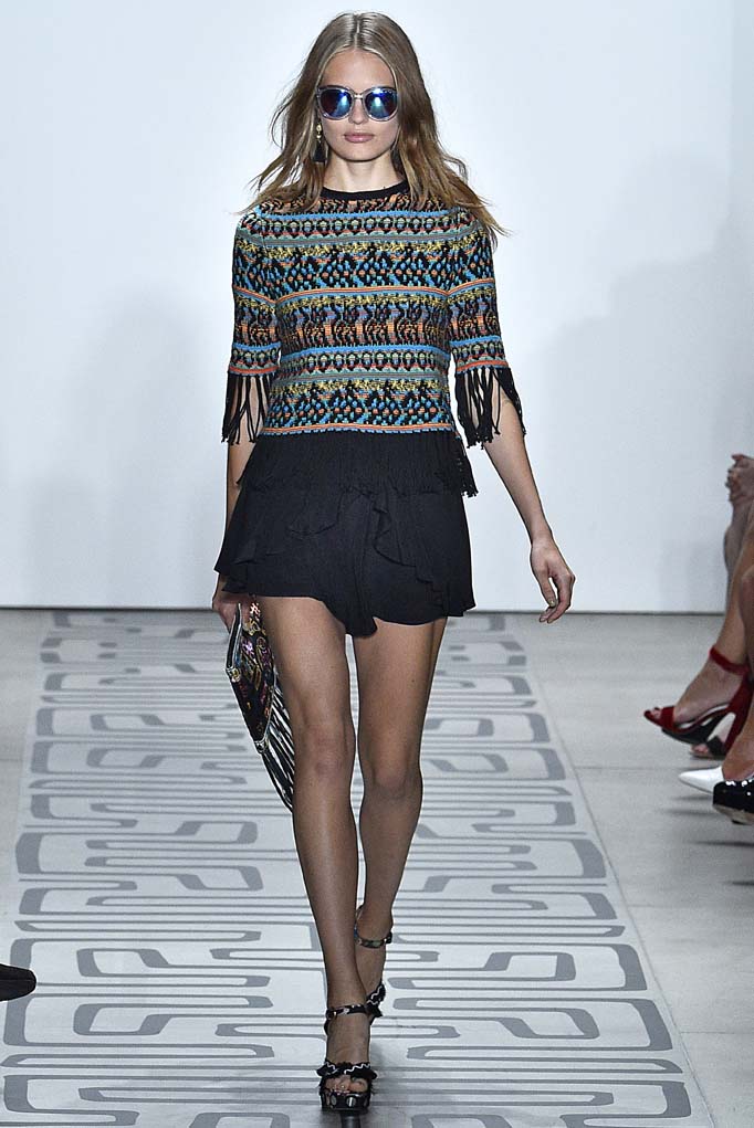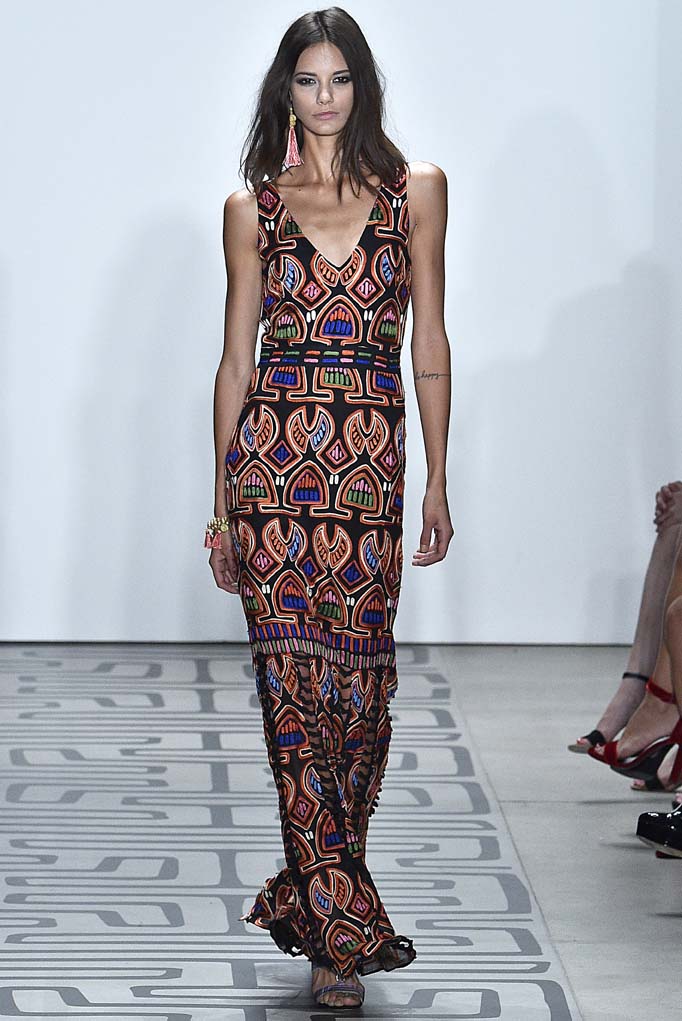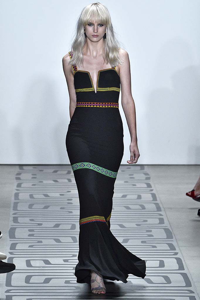 It’s all about the journey, n’est-ce pas? RISD grad Nicole Miller is classically trained as a fine artist, so it’s no wonder that in her world, a trip to a gallery could be the starting point of a new season. A recent exhibit on Panama informed her take on Spring ’17, and the collection was heavy on molas, the traditional dress worn by the country’s Kuna women. Body-con minis, lace tees, and cleverly embroidered necklines rounded out the offering, which is full of groovy options for hard-working city girls and globe-trotting world travelers alike.