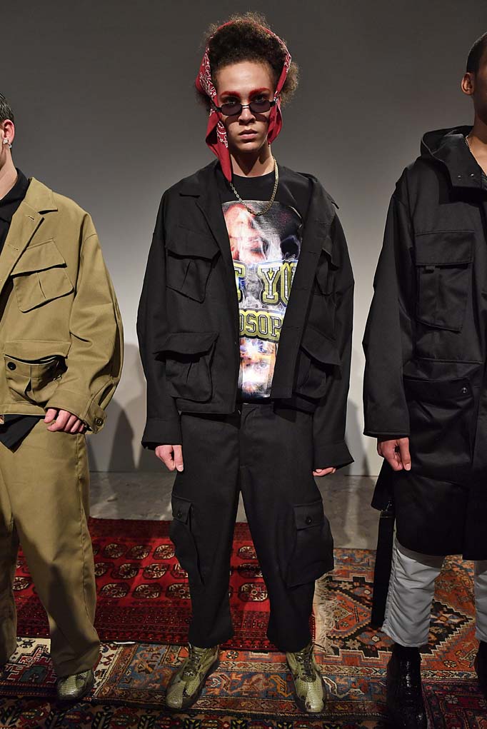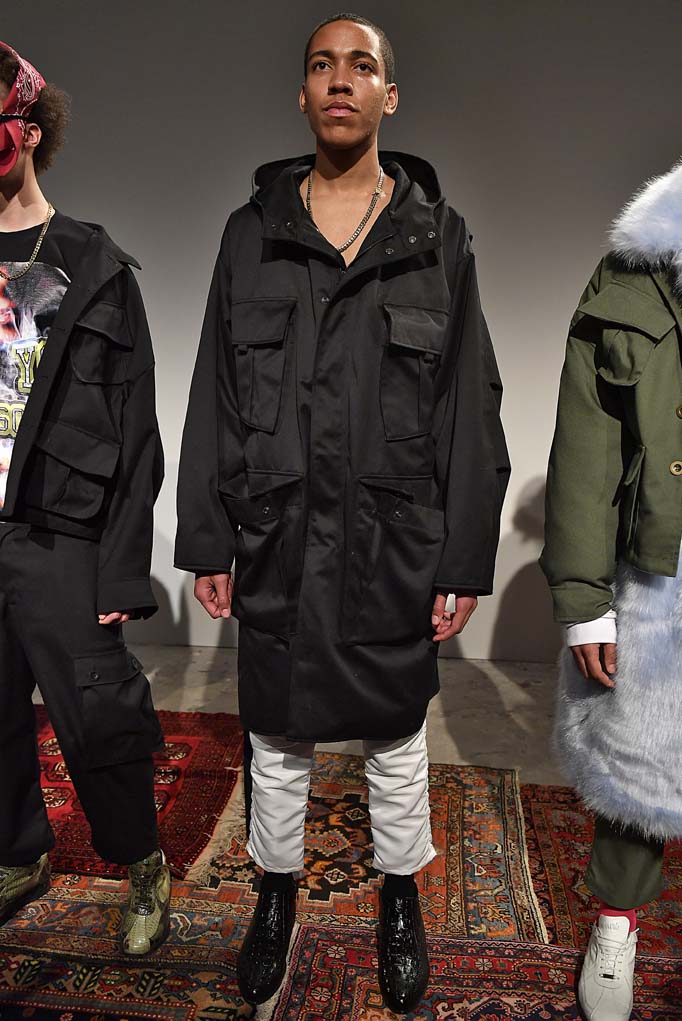 For its third season in action, menswear label Landlord looked to the hip-hop fashion scene of the ’90s and 2000s. Creative director Ryohei Kawanishi took inspo from southern hip-hop artists (Outkast, Ludacris, Lil Wayne, Nelly, etc.) and the styles he sees around his Harlem neighborhood. At last night’s presentation at Skylight Clarkson Square P3, the mods hammed it up for the crowd, some throwing up deuces and others crouching down in “The Thinker” pose while Juvenile “Back that Ass Up” played on a loop. The looks ranged from nylon tracksuits to hoodies to fur vests and coats with a utilitarian vibe, which makes sense as Landlord produces the line in a factory that makes military uniforms.