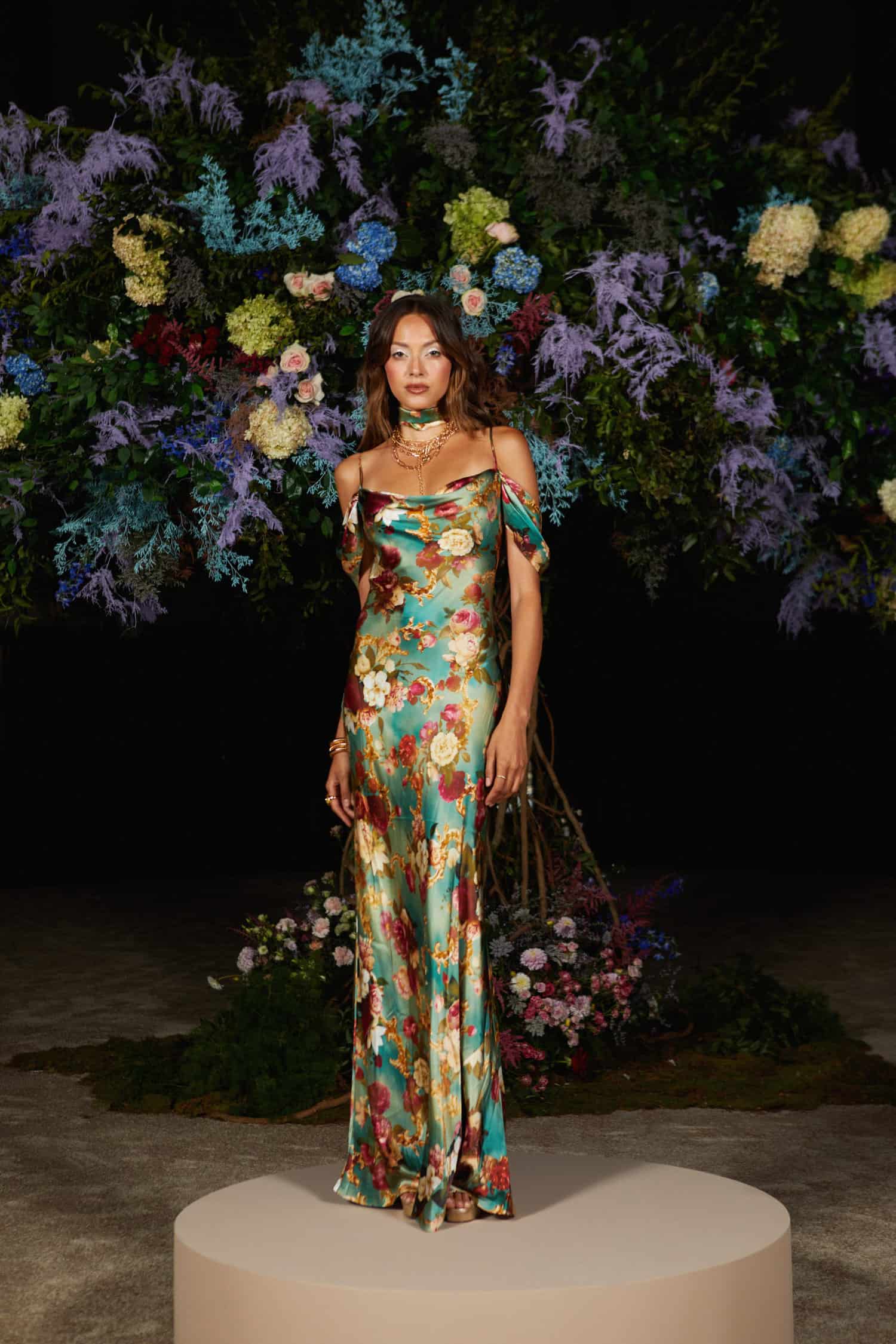 “Creating the Spring 2024 Collection was the most rewarding in my career. It’s angelic with a romantic point of view and an emphasis on rich fabrics. We want her to feel like an iconic diva,” Rudes Dann said.
