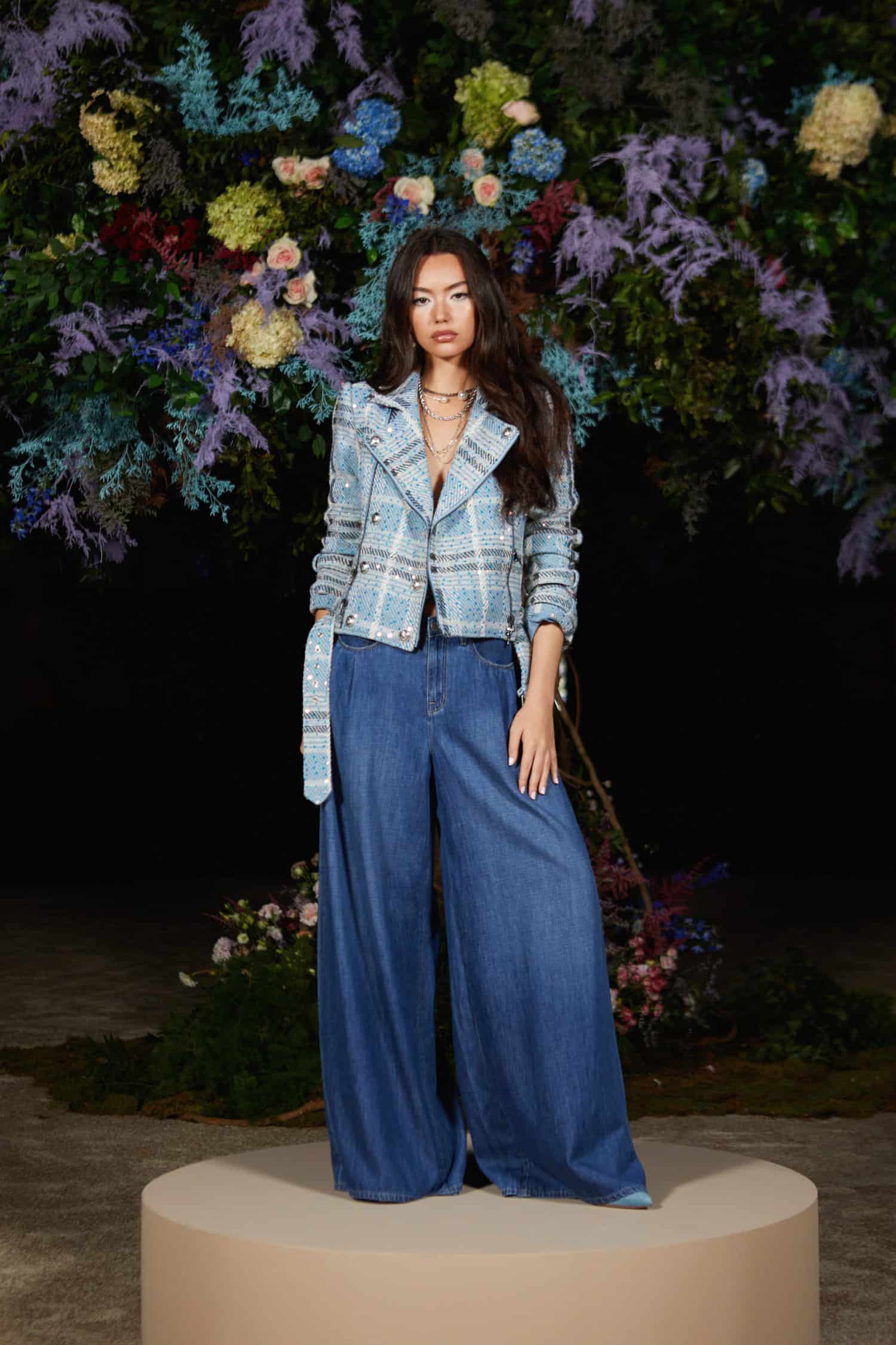 With her finger always on the pulse of what her loyal customer wants to wear, Rudes Dann looked to vintage Parisian references to emulate a rococo feel for this collection, while keeping an eye firmly fixed on current day wearability of course. What that looked like were cherub, peony, and cloud prints on cowl-neck silk slips with matching laissez faire dusters or neck scarves, lace detailing, and ornate embellishment across soft blue blazers and mini dresses. In terms of denim, one of the newer focuses for the brand, this season saw wider cuts introduced, in tempting indigo washes, as well as a slim-fit paisley pair.