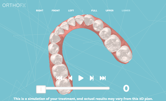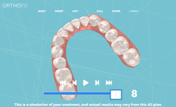 Later that day, I got a link from OrthoFX to see a 3D rendering of what my teeth would look like at each step of my treatment. It was so cool! I could look at my teeth from any angle and fiddle with the little time-lapse bar to watch them move back and forth. Crooked, straight, crooked, straight. I probably played with it for an hour before I went to bed that night.