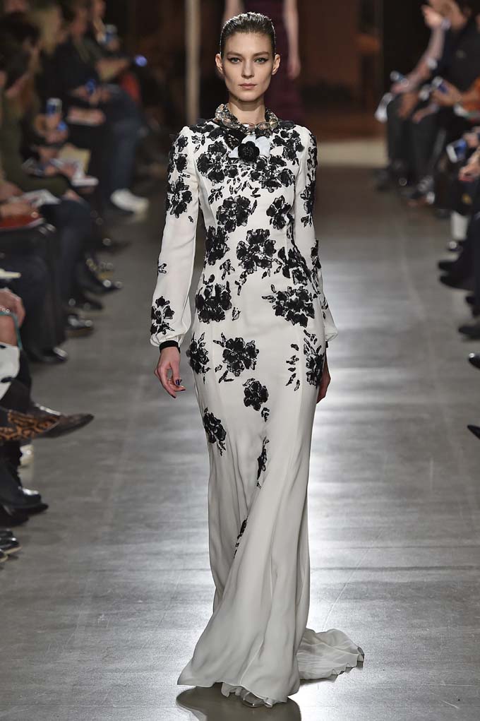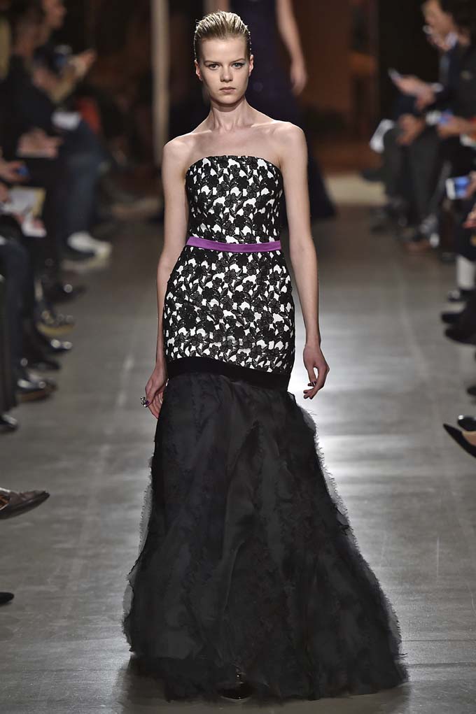 It’s no easy feat to fill the shoes of a legend. Peter Copping’s debut at Oscar de la Renta last night had all of the uptown ladies who lunch fare that will keep the brand’s longstanding clients happy, but he also infused his own ideas into the collection. PYTs perched front row like Taylor Swift and Karlie Kloss will surely appreciate the sexier numbers like a sheer lace bodice on a burgundy halter gown. Lace, after all, is something Copping knows quite well from his Nina Ricci days. Bravo!