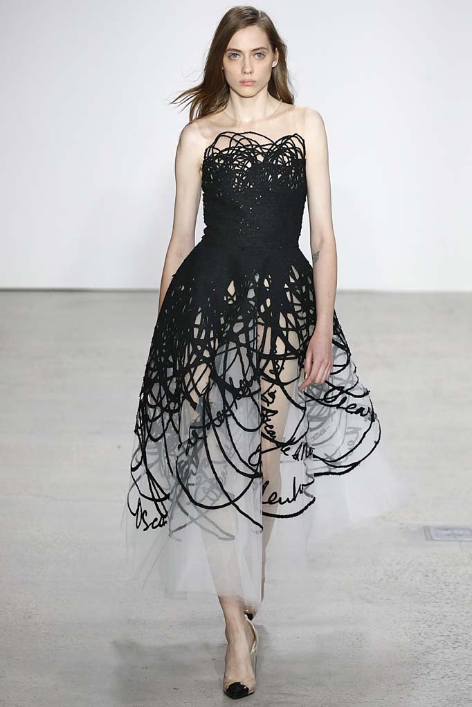 Laura Kim and Fernando Garcia cleverly (and quasi-literally) interpreted the house’s signatures—tulle ball gowns, splatter-paint denim, and most winning of all, inventive uses of the late designer’s exuberant scrawl. This is a whole new Oscar de la Renta from two of New York’s most promising talents and it’s targeting clientele of all ages.