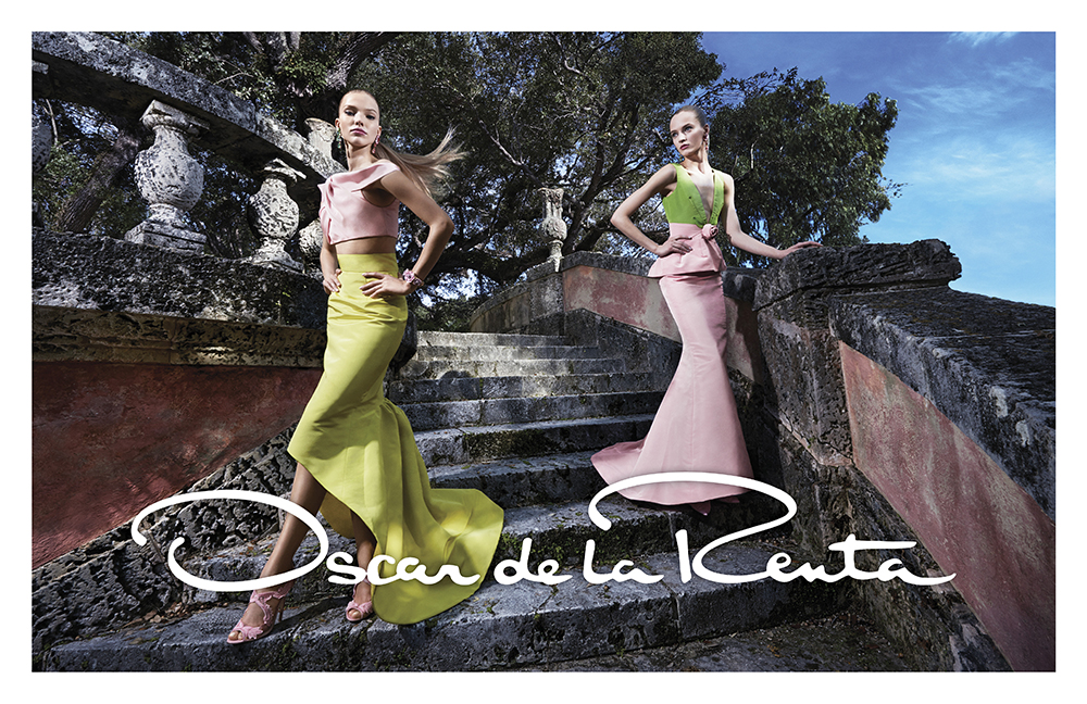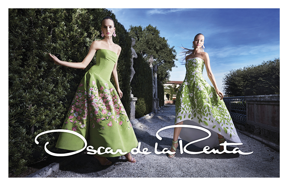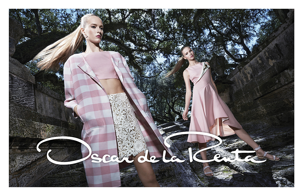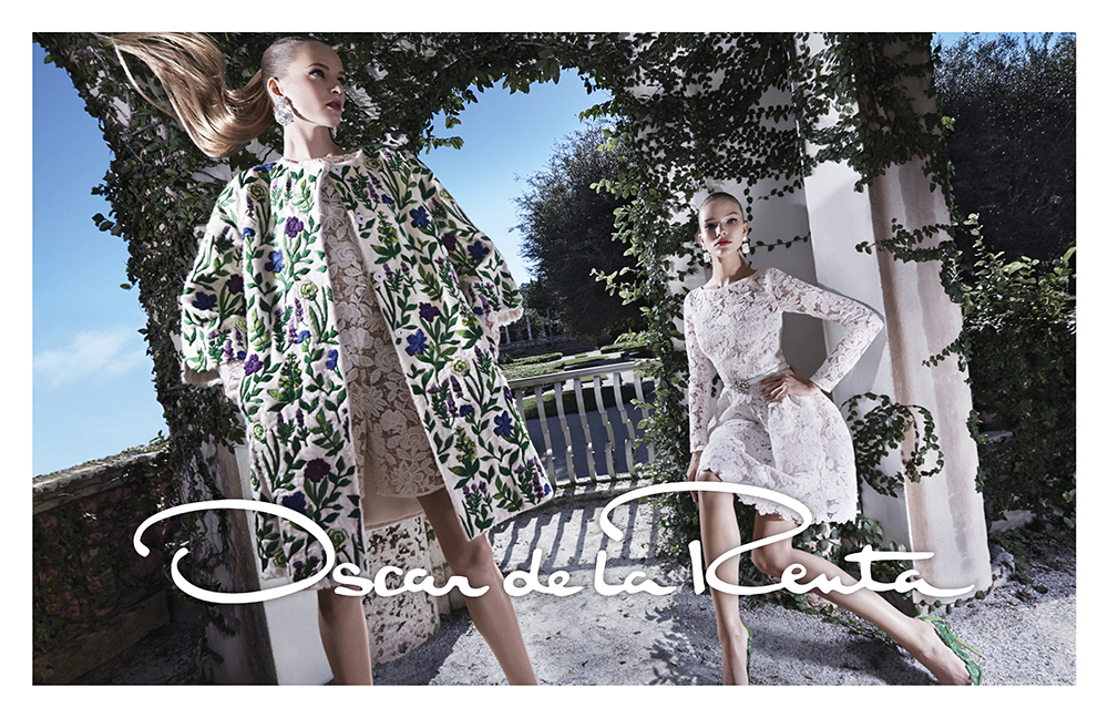 What’s the perfect antidote to a chilly January morning? The arrival of the Spring 2015 Oscar de la Renta ad campaign. Mods Daria Strokous and Sasha Luss share the spotlight in this campaign, which features pieces from the last collection crafted by the late designer. The girls were styled by Natasha Royt in springy green gowns, prim pink coats, beautiful florals, and lace, and photog Steve Hiett captured the romantic shots in Miami. if you want to place dibs on any of the gorgeous pieces in the ads, head over to the OdlR site to place your pre-orders, maintenant.