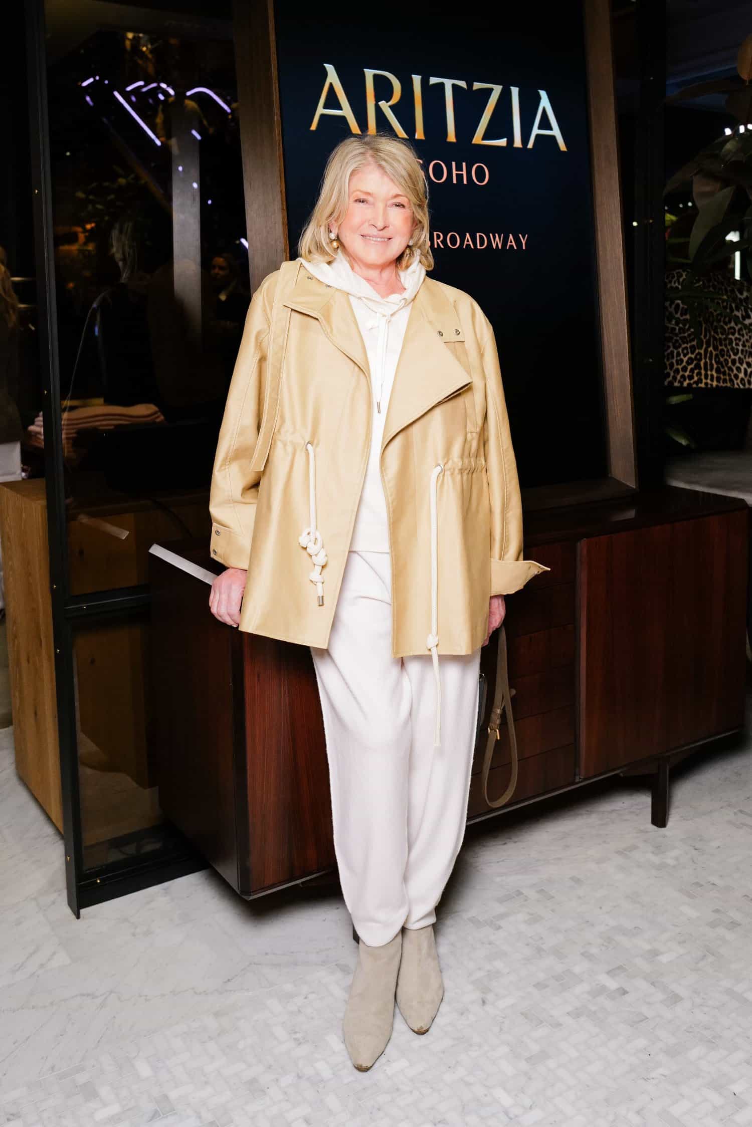 Where do Amelia Gray, Martha Stewart, Irina Shayk, Paloma Elsesser, and Alex Consani go to party on a Thursday night? Aritzia! To celebrate the reopening of its chic three-floor SoHo boutique, the brand threw a splashy party with a cheeky flair. Greeted by waving supersized SuperPuff jackets in the windows, guests braved the rain for the glitzy affair. On-site, attendees posed in 360-degree photo booths, posed for on-site portraits, and played a keychain claw machine before checking out the store’s sleek new fitting rooms, downstairs café, and more. Naturally, everyone enjoyed themed cocktails and light bites—including gold foil-topped pear gelato!—before leaving with their own Aritzia marzipan apples. Guests included Georgia Fowler, Reign Judge, Brian Hill, Jennifer Wong, Natalie and Dylana Suarez, Lynette Nylander, Cathaleen Chen, Laura Harrier, Danielle Goldberg, Anastasia Gerrans, Melissa Vale, Isan Elba, Kelly Reed, Grace Joshua O’Connell, and more.