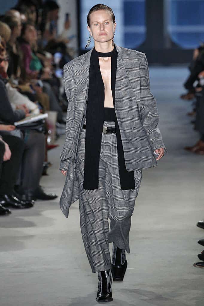 Flyaway ribbed sweaters, oversize menswear, micro-pleated skirts, and fussy trenches — welcome to Proenza Schouler’s high-concept take on basics. The square-toed boots were a bold move, but given what’s happening in grandpa-sneaker land these days, they’re hardly surprising. Not our all-time-favorite collection from Jack and Laz — when they go wearable, we usually go wild — but we expect to see some enthusiasm from the PS loyalists.