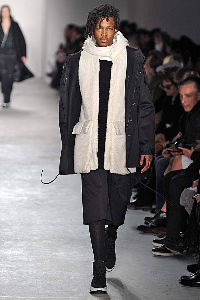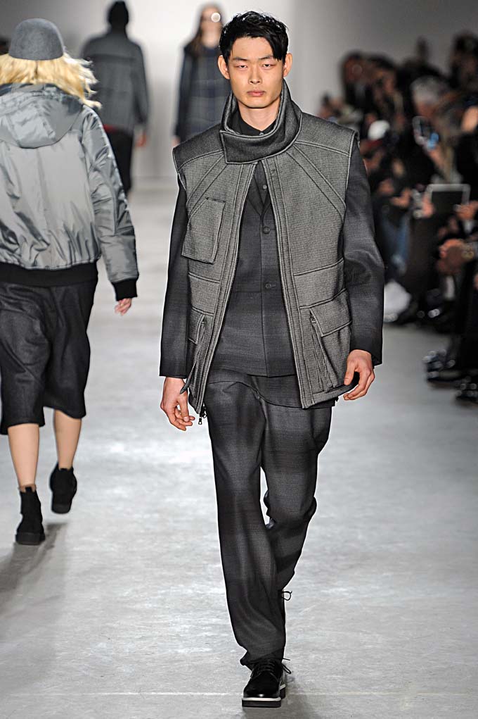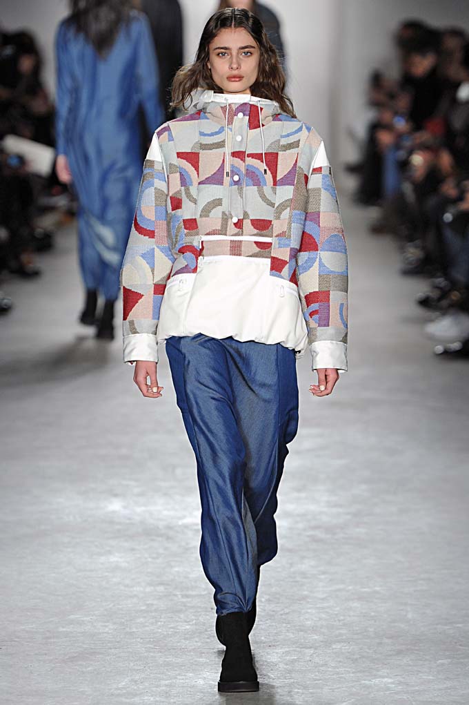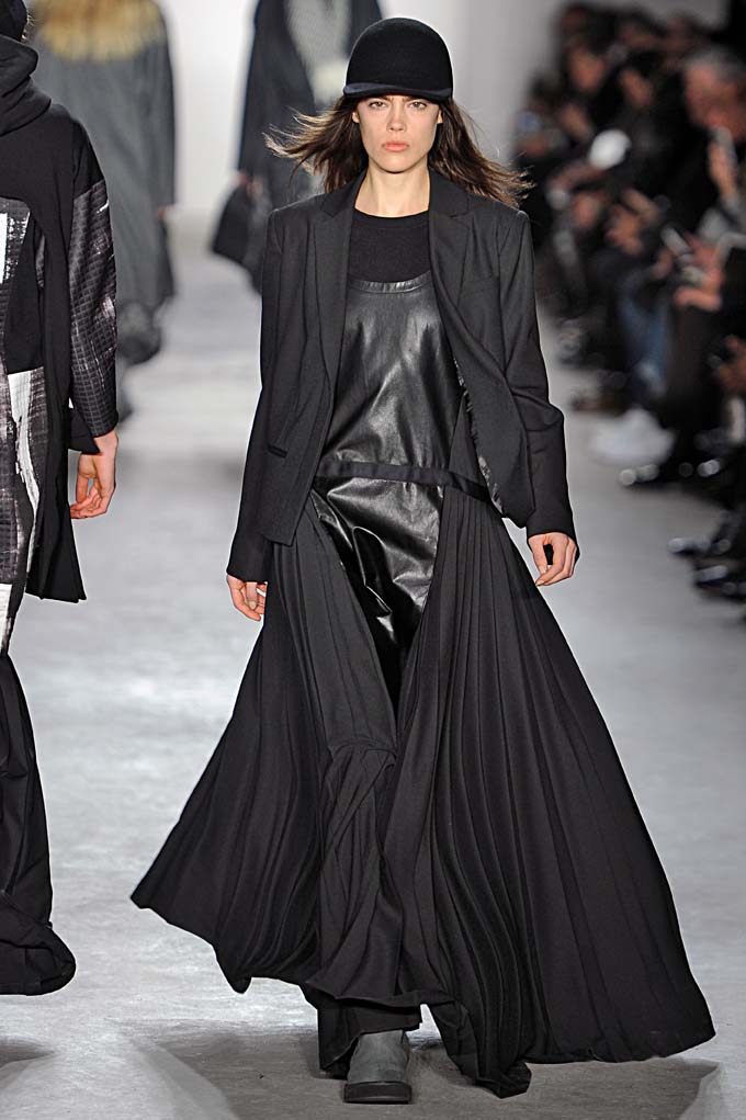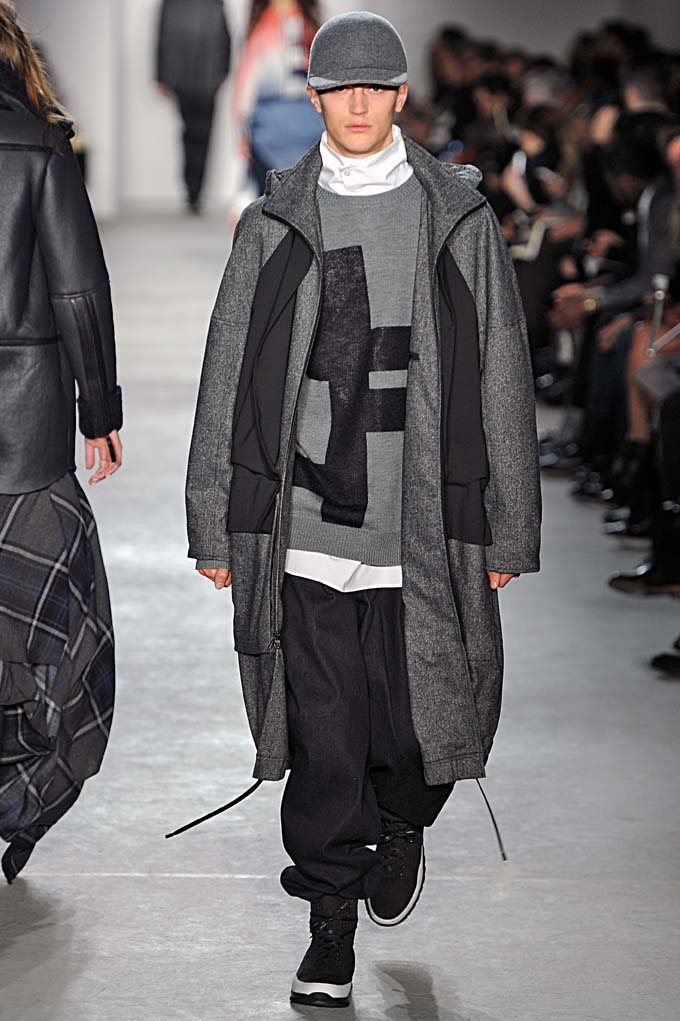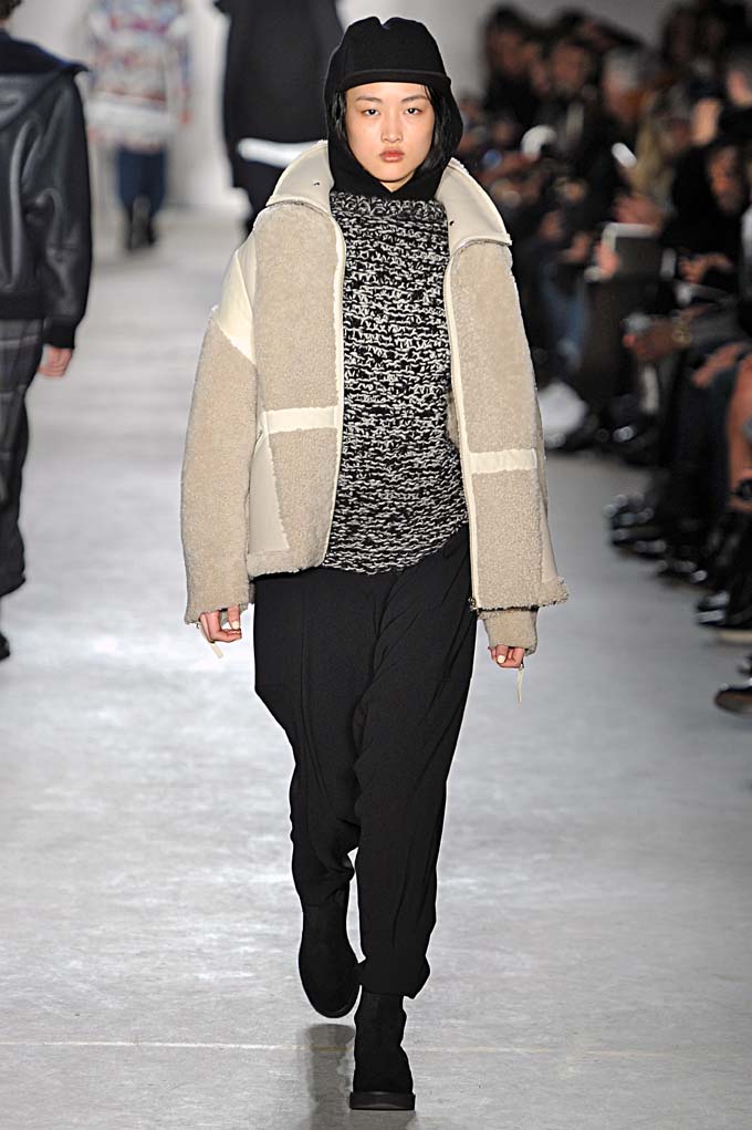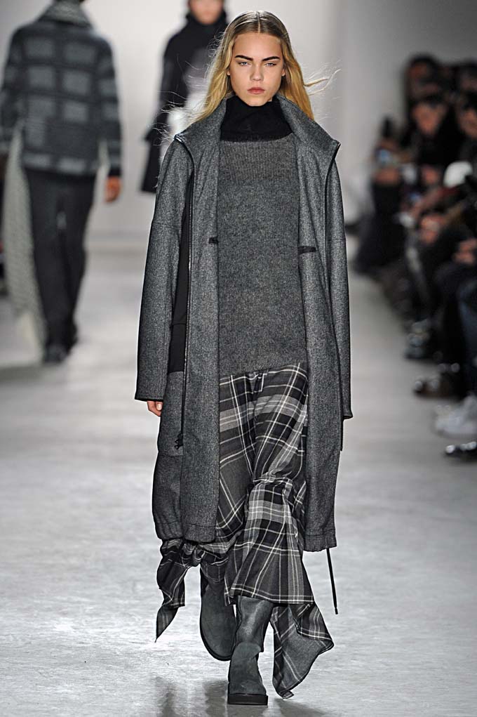 On the runway, designer Maxwell Osborne and Dao-Yi Chow compiled brilliantly layered looks in varied hues of grey, black, and blue, in addition to a few playful plaid creations and a multi-colored shearling coat that caught the eyes of Jenna Lyons and Robin Givhan. “There were two things that I’m obsessed with,” Lyons said as she headed backstage after the show. “There was a sort of cream, multi-colored shearling that I loved. I also loved the milky, marshmallow poncho. That was amazing.” Givhan chimed in, echoing Lyons about the former:”That cream-colored shearling! Yes!”
