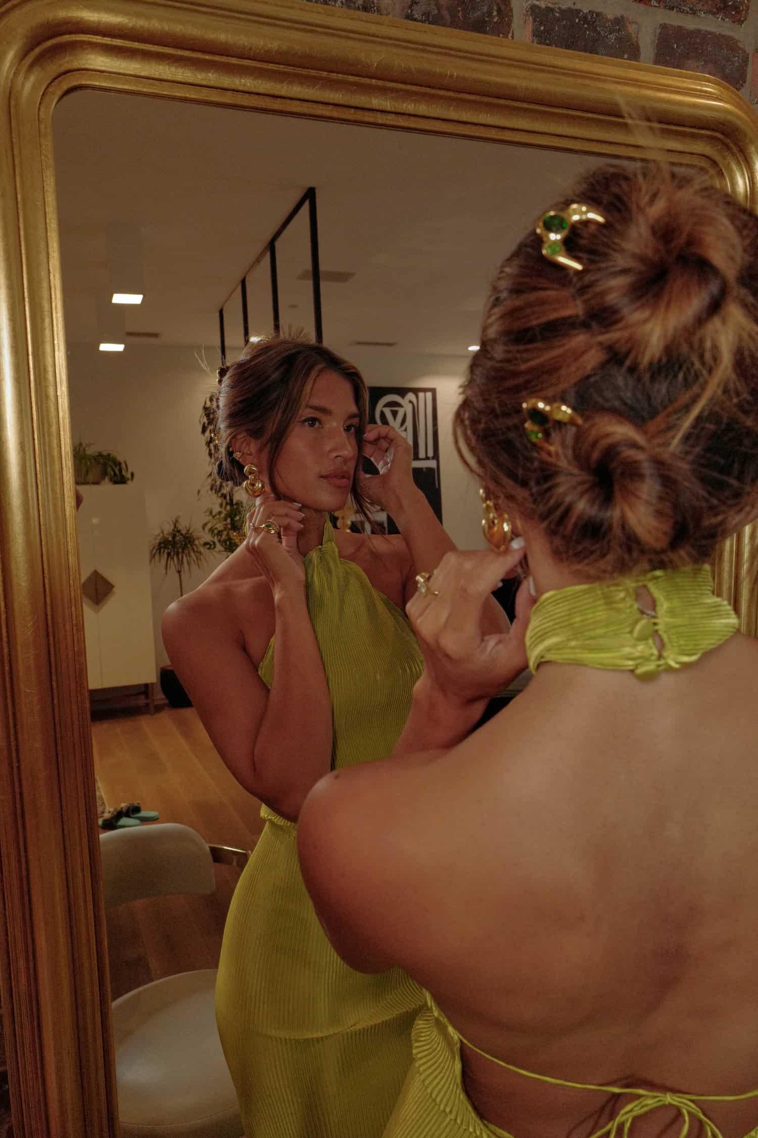 Say hello to The Rocky. NYC jeweler to the stars Deborah Pagani tapped the quintessential Cali cool girl Rocky Barnes for her new collaboration. Together, they partnered on the first bejeweled version of Pagani’s popular DP Pin, which marries the brand’s sleek city slicker vibe with content creator Barnes’ laidback boho and beachy style. This time around, The Rocky is inspired by vintage jewelry and features emerald green ombre stones in the instantly-recognizable gold hair accessory. “I’ve always loved following Rocky; she has that cool California spirit and a real penchant for color,” Pagani says. “This collaboration was all about celebrating that—a perfect storm of her point of view and our bestselling silhouette. Our followers have been hinting at wanting to see some color in the next pin, so I think they’ll be really excited about this one!” The Rocky is available now for $149, with a pink stone version set to debut in February…just in time for Valentine’s.