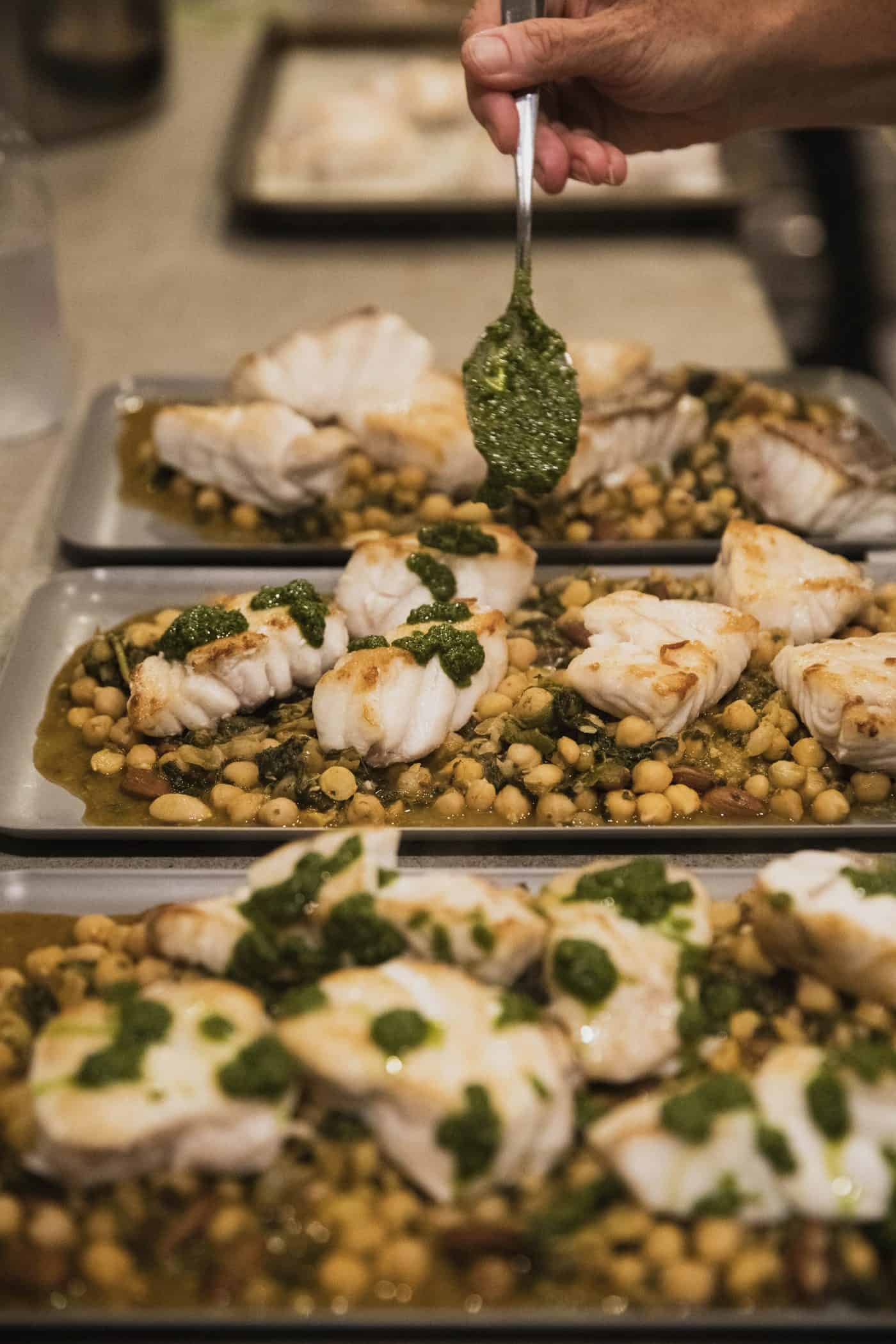 The evening began with cocktails and wine courtesy of Whispering Angel, Enemigo Tequila, Two Chicks, The Calling Wine and non-alcoholic beverages from Bimble and FIJI Water. Rosie’s Amagansett created a custom menu and prepared delicious local fare for a family style meal. The first course included mixed leaves, cucumber salad and summer zucchini. Entrees for the evening were a choice of bucatini pasta or Montauk striped bass. Dessert was a delectable Eton mess, handmade with strawberries, mint and black pepper.