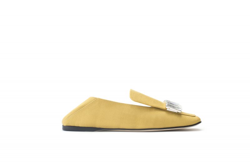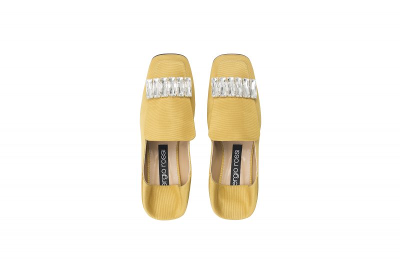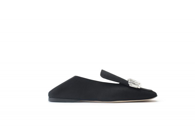 Sergio Rossi is teaming up with iconic New York boutique Fivestory to celebrate its newly renovated shoe floor. Sergio Rossi reimagined the sr1 slipper in a silk moiré, inspired by the boutique’s interior design and using the same fabric as the wallpaper from the Amoir Libre collection by DEDAR. Made in Italy, the handcrafted slipper features crystal baguette embellishment.