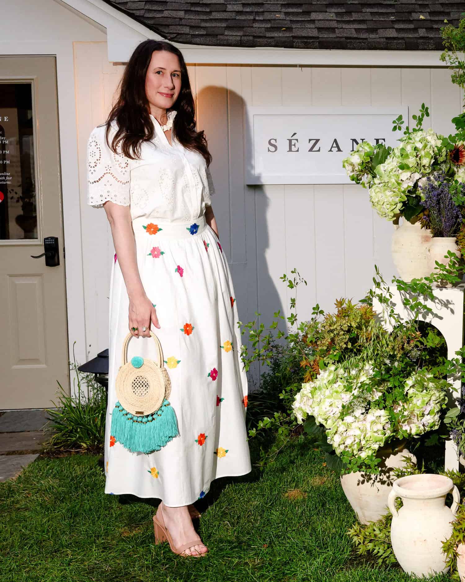 In celebration of its opening, the garden buzzed with familiar faces: Aurora James, Beanie Feldstein, Karen Elson, Katie Lee Biegel, Joey Wölffer, Jen Rubio, Samantha Angelilli and Jamie Singer Soros chatted, each dressed in delicate eyelets, scattered polka dots, and the brand’s floral high-summer prints. Georgia Fowler breezed in post-photoshoot sporting suede shorts and classic espadrilles, while Hannah Bronfman casually caught up with Nordstrom’s Rickie de Sole and Jessica Sailer van Lith, all in Sézane’s latest looks.