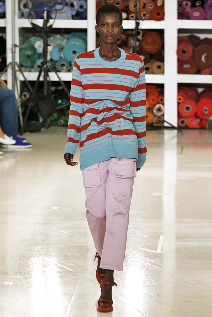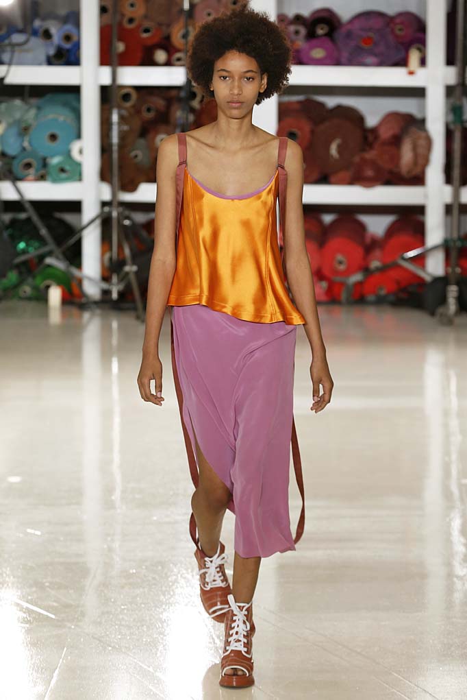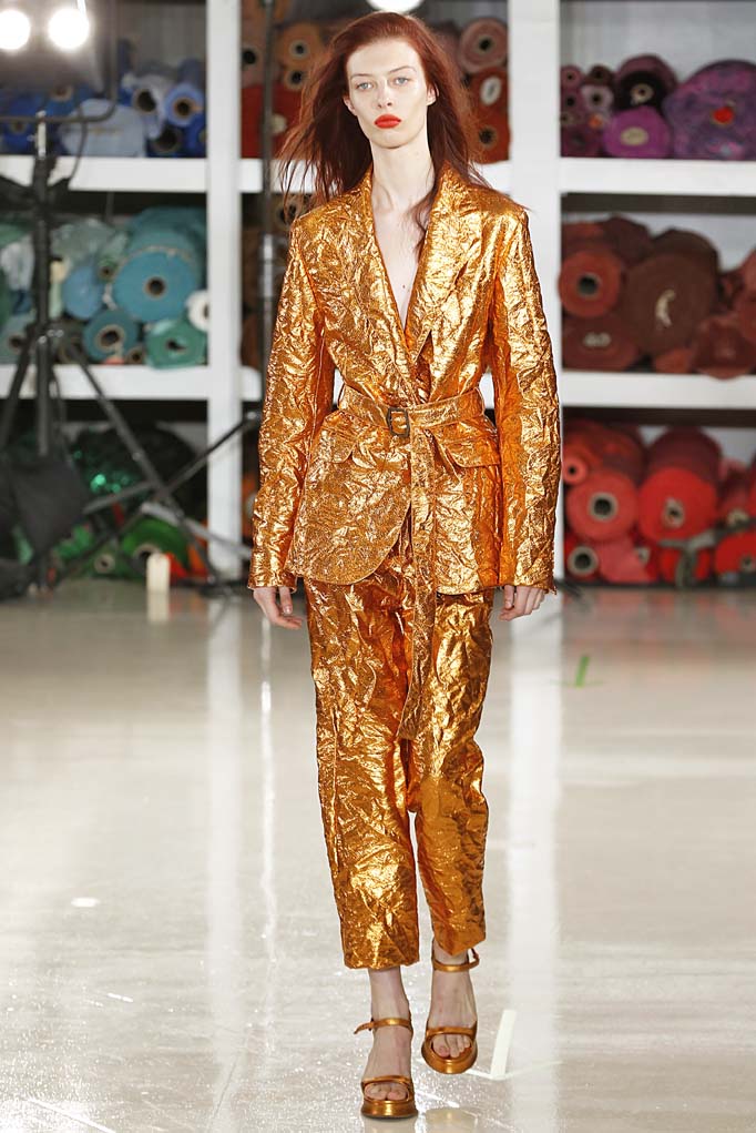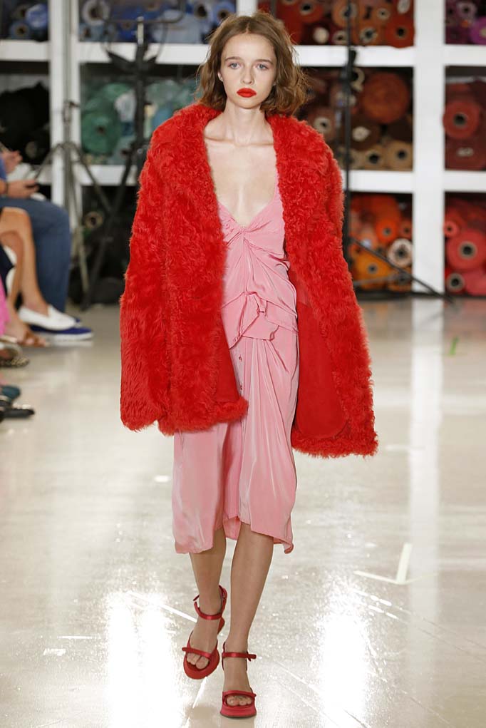 For those of us still smarting over our failure to invest in one of Sander Lak’s killer shearlings last season, fret not—his Spring styles are even better. And they look best when paired with one of his off-kilter slip dresses or fearless jumpsuits. Another bright moment from