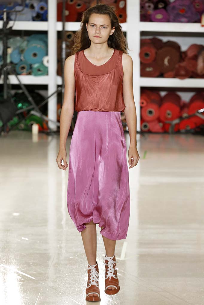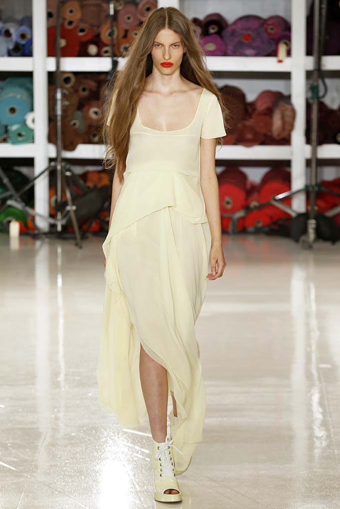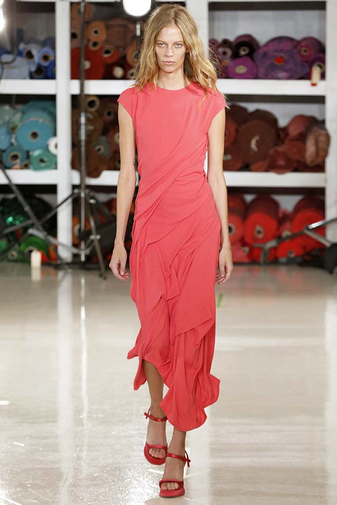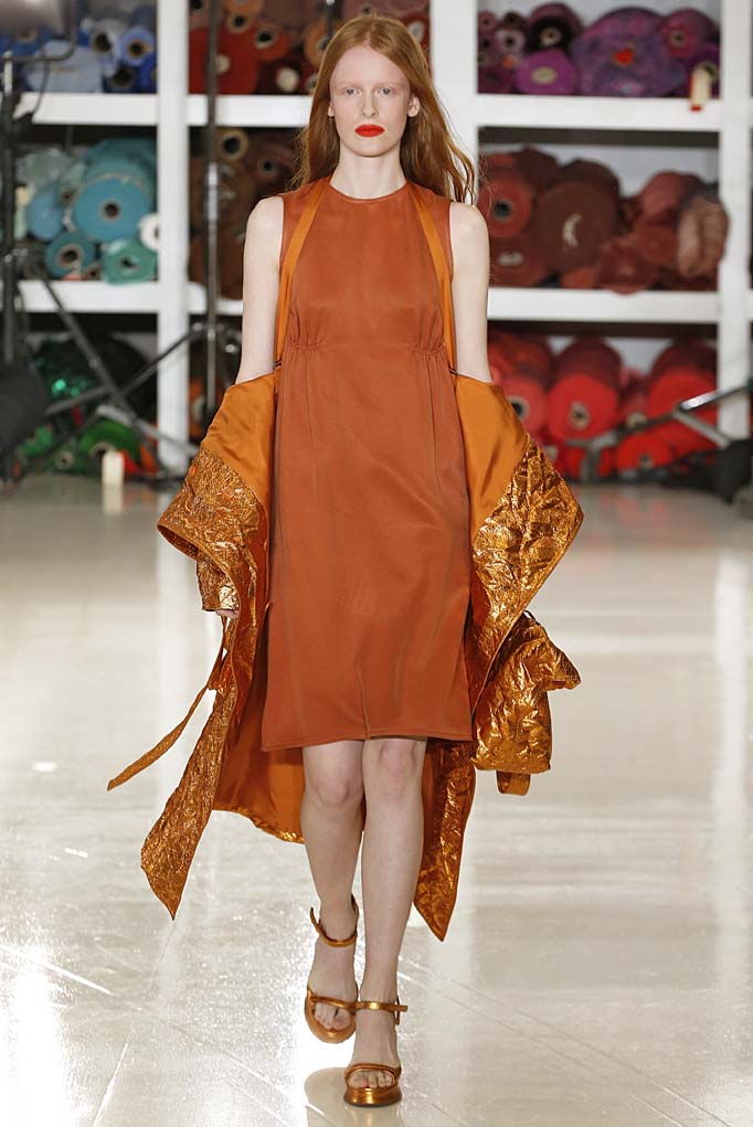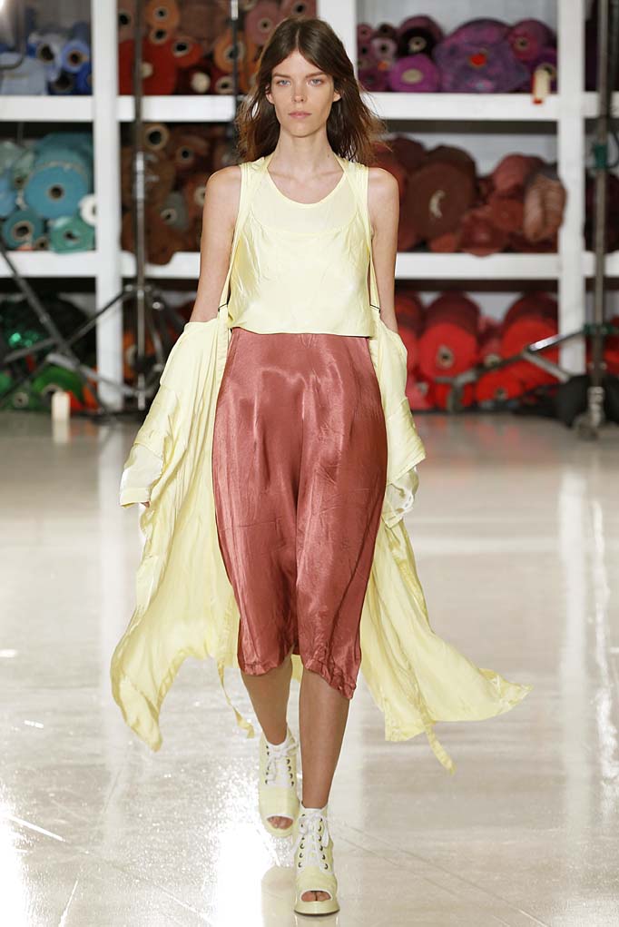 For those of us still smarting over our failure to invest in one of Sander Lak’s killer shearlings last season, fret not—his Spring styles are even better. And they look best when paired with one of his off-kilter slip dresses or fearless jumpsuits. Another bright moment from