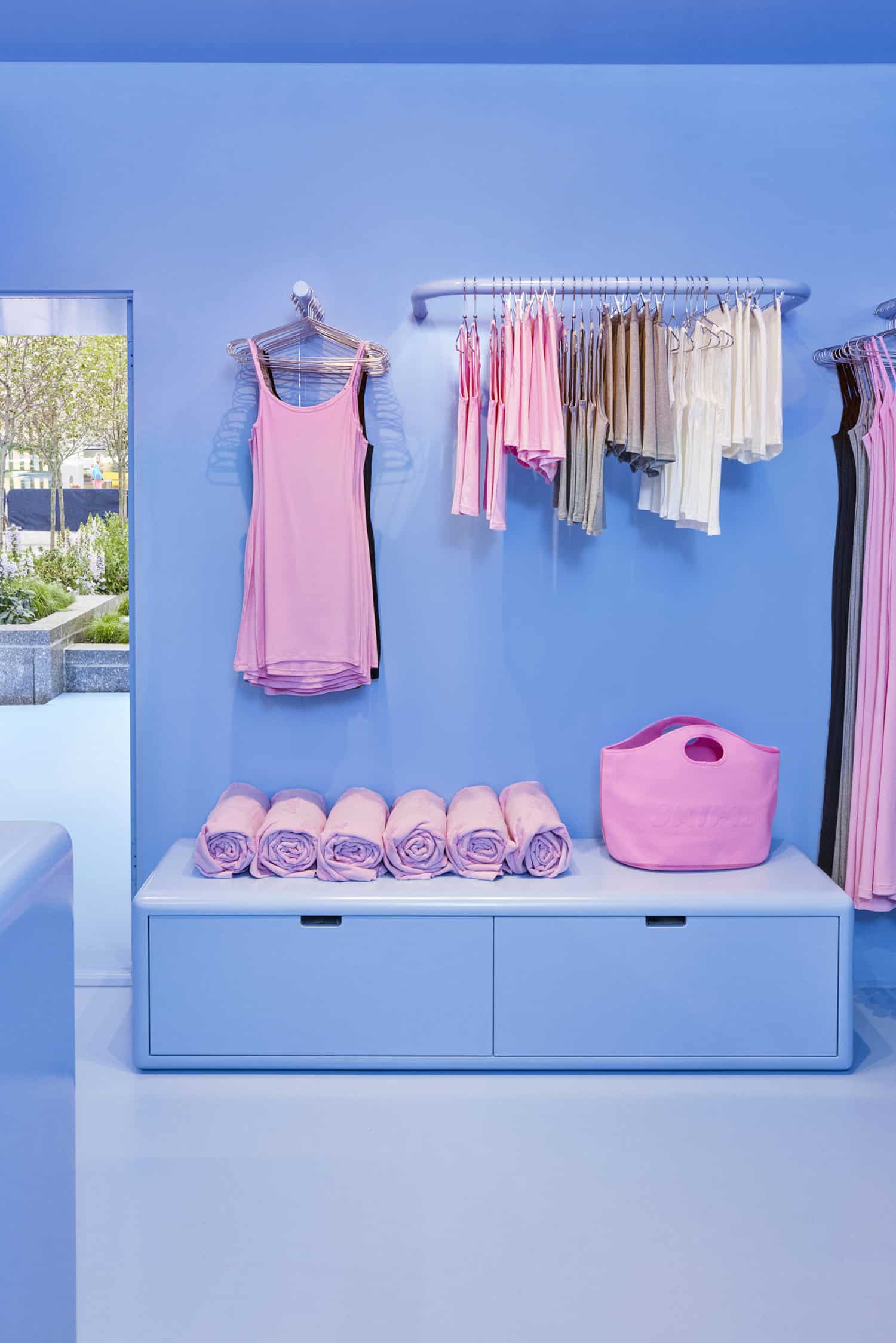 New Yorkers, give a warm welcome to SKIMS. The innovative shapewear and lifestyle brand opened its first-ever retail activation in Manhattan today, unveiling a summer-themed pop-up shop which will be brimming with SKIMS essentials, as well as treats from local gem, Morgenstern’s Ice Cream. To help spread the word, SKIMS teamed up with the Radio City Rockettes, who performed their iconic kickline in front of their home venue while dressed in the brand’s best-selling Seamless Sculpt Collection. Talk about stopping traffic! The eye-catching iris blue pop-up store, designed by Willo Perron of Perron-Roettinger, is open now at 620 Fifth Avenue.