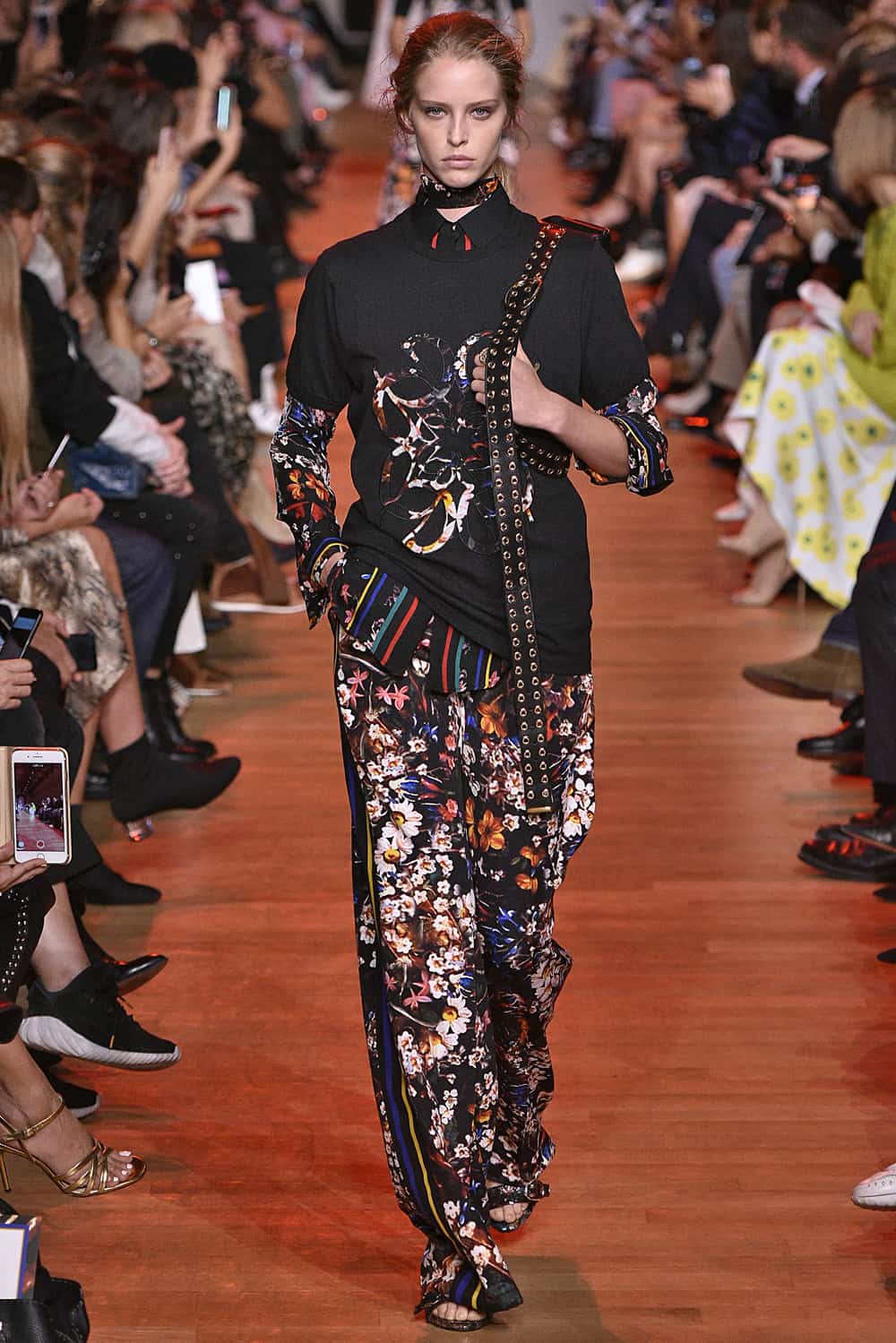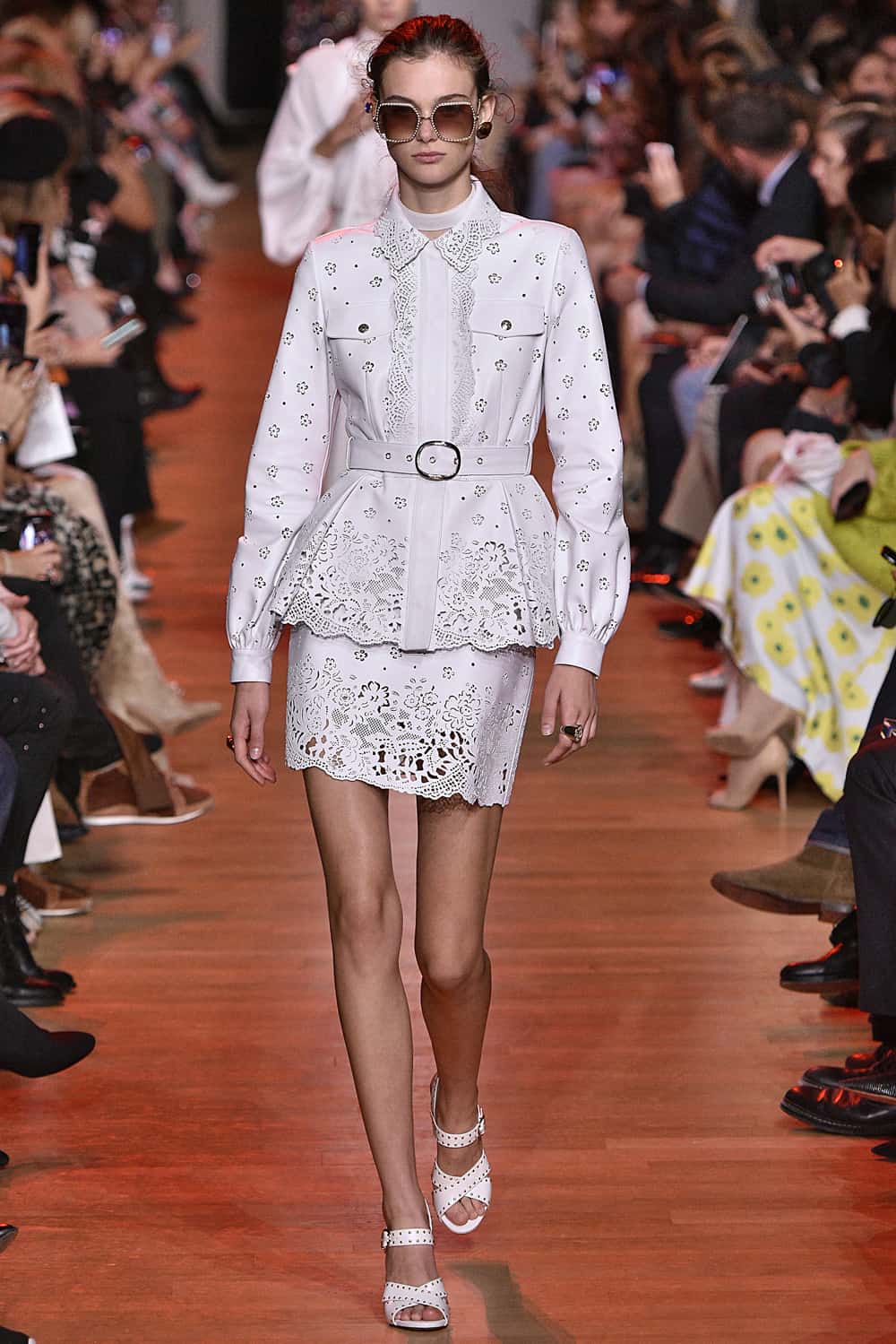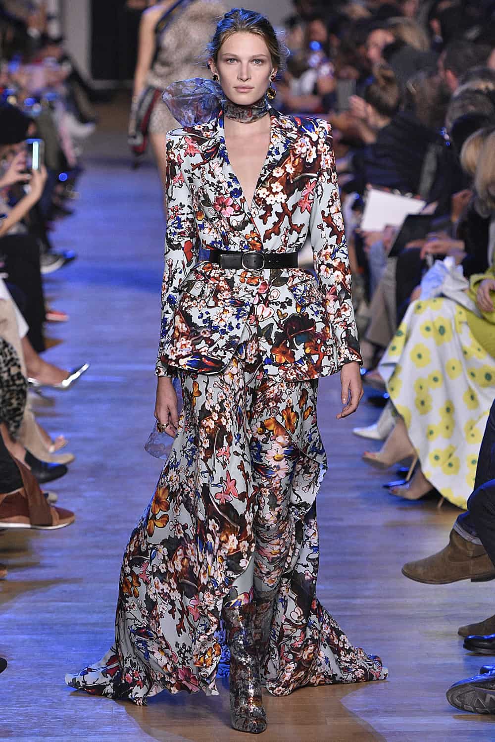 Elie Saab took the definition of “spring” and made it his own in a collection full of flower prints and vibrant colors. Clearly made for feminine, yet empowered women — as embodied by Olivia Palermo, Paz Vega and Toni Garrn, who sat in the front row — the designs included lace, sequins, sheers, and animal print.