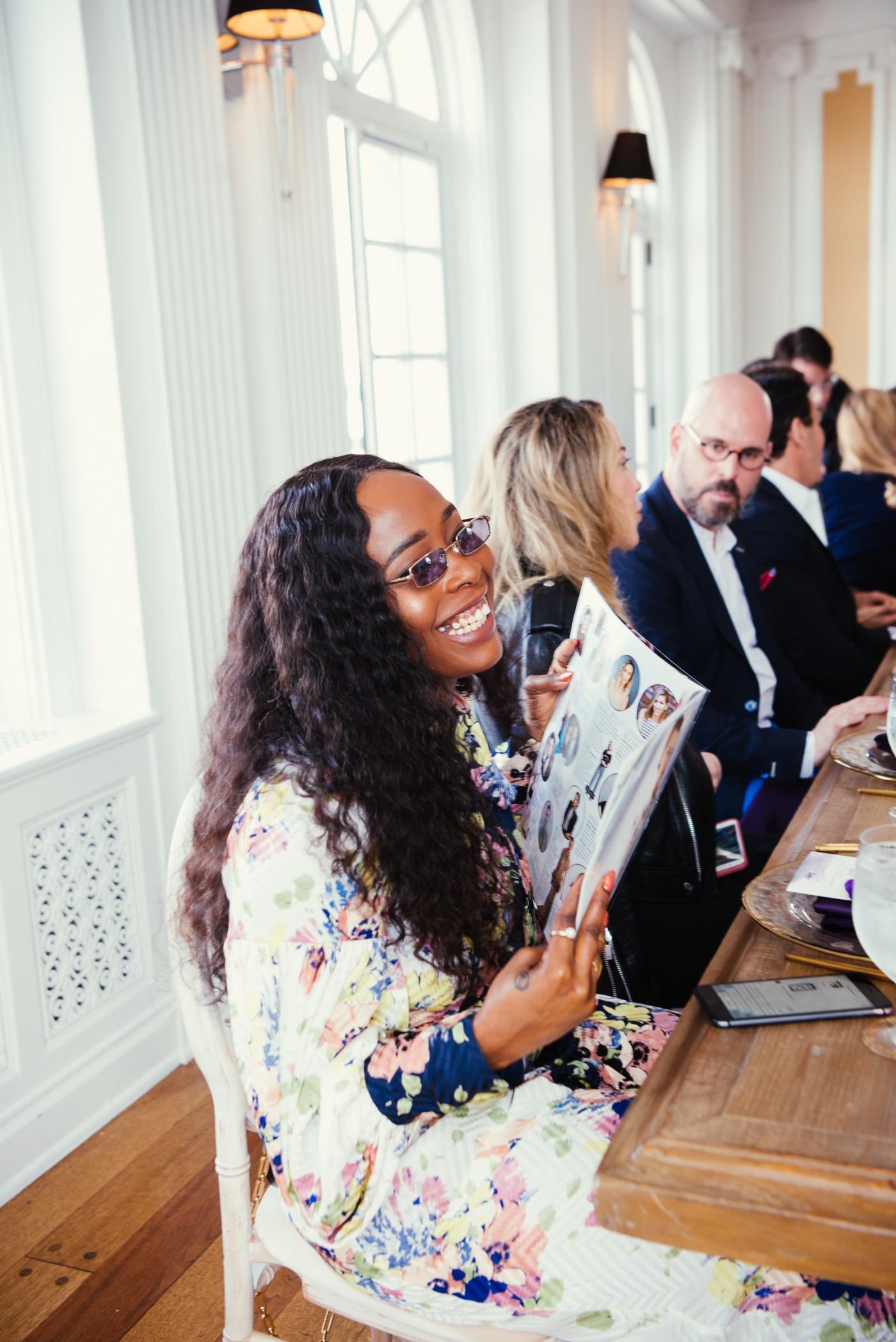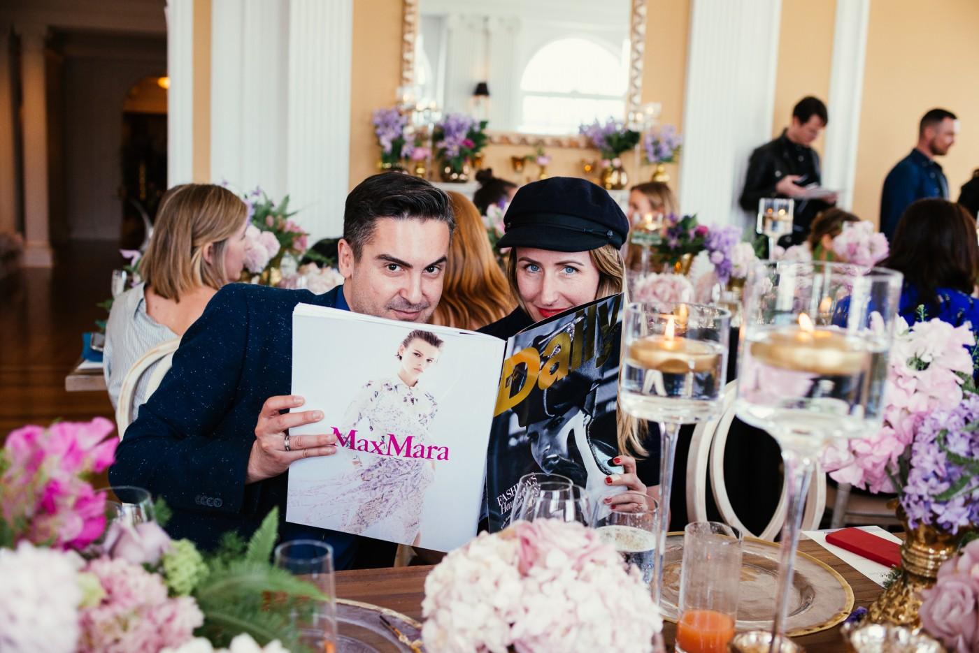 The luncheon was a three-course sit-down meal catered by the hotel’s executive chef. Tables were set with floral centerpieces by George Ortega of Square Root Designs and copies of The Daily Front Row’s latest issue were sprinkled throughout the room.