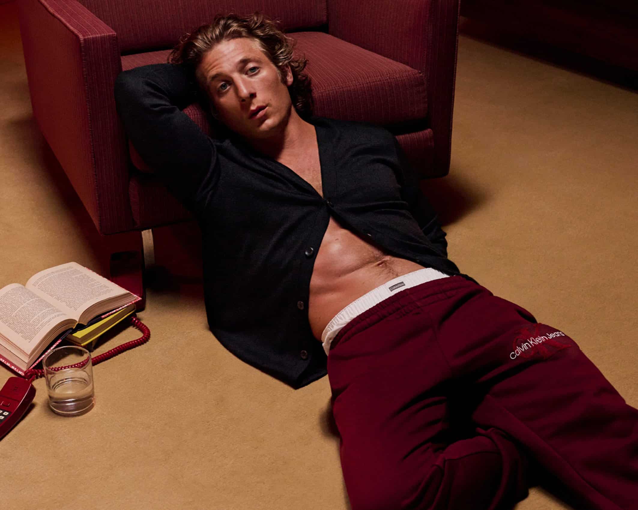 Yes, chef! Jeremy Allen White’s third Calvin Klein campaign has arrived, just in time for the holidays. The hunky actor is front and center in new images photographed by Stuart Winecoff, where he lounges fireside and preps sandwiches at home. He’s outfitted in Calvin Klein’s latest versatile undershirts, pajamas, separates, and denim. Discover the full campaign below!