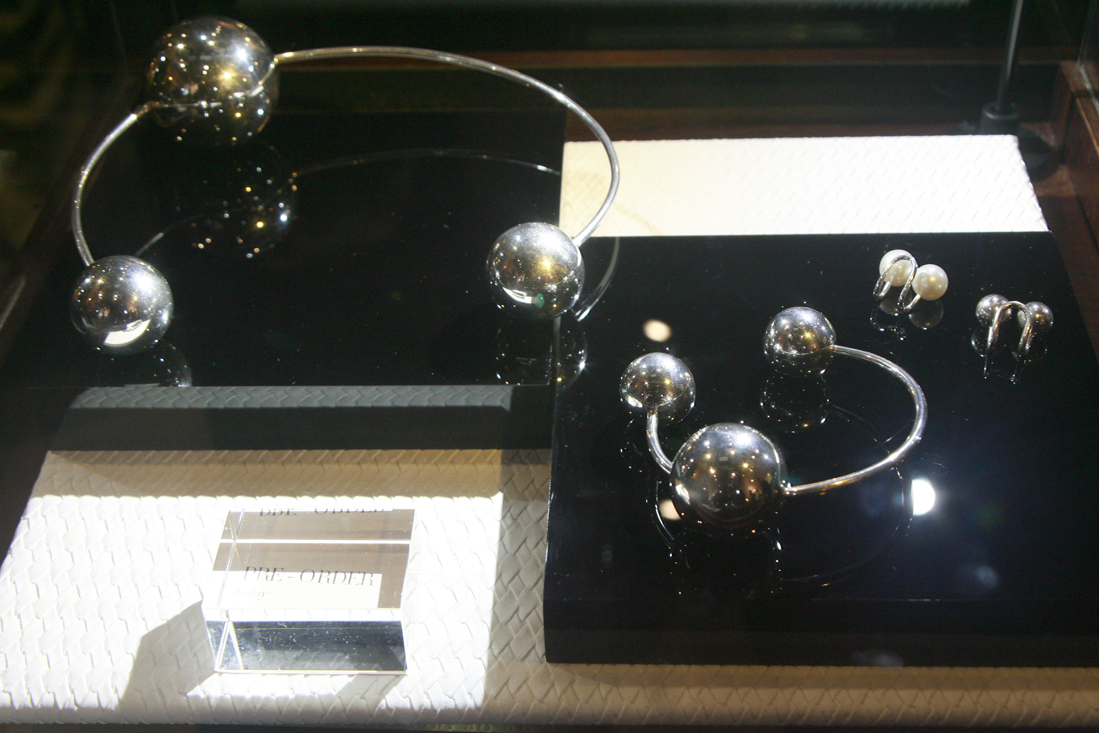 Last night, bauble designer to the stars and Swedish celeb Efva Attling had a ball (or two). Literally: she was wearing her iconic Balls necklace and a coordinating ear cuff, to celebrate her boutique’s third year in the Meatpacking district. The shop was stuffed to the brim with jewelry-adoring revelers, who drooled over diamond encrusted chokers, giggled at the cheeky Paparazzi ring stamped with the phrase ‘F*ck Off’, and peered dreamily at earrings adorned with butterflies. The designs might’ve been saucy, but Attling, a former model and pop star, was a vision in pure white, with a big blonde bun to match. Between posing for selfies with customers and pointing out her favorite baubles, Attling took five minutes to chat with your Daily.