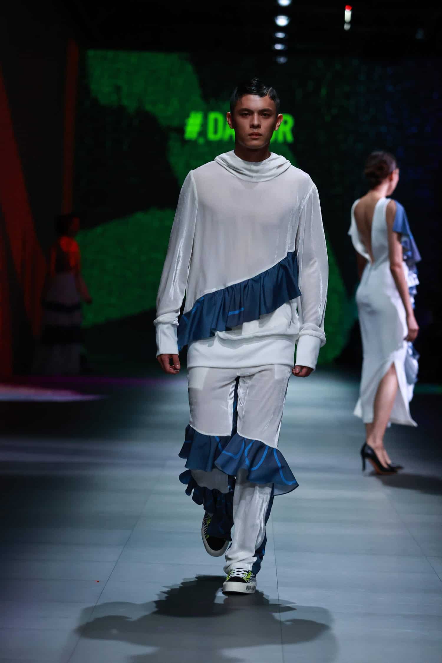 The event combined the digital and the physical, with audiences experiencing both a runway show at new space, Songshan Cultural and Creative Park, as well as via the digital venue of Ambi Space One. Both experiences fused fashion with the future via a smorgasbord of visuals, installations, music, effects, sounds, and other elements to make the viewing experience as immersive as possible. A partnership with Chunghwa Telecom’s 5G also made sure multimedia images were transmitted and streamed to viewers tuning in from all over the globe at rapid speed.