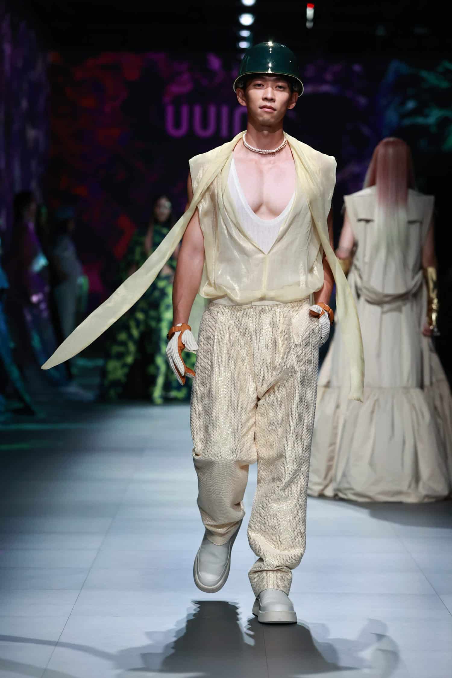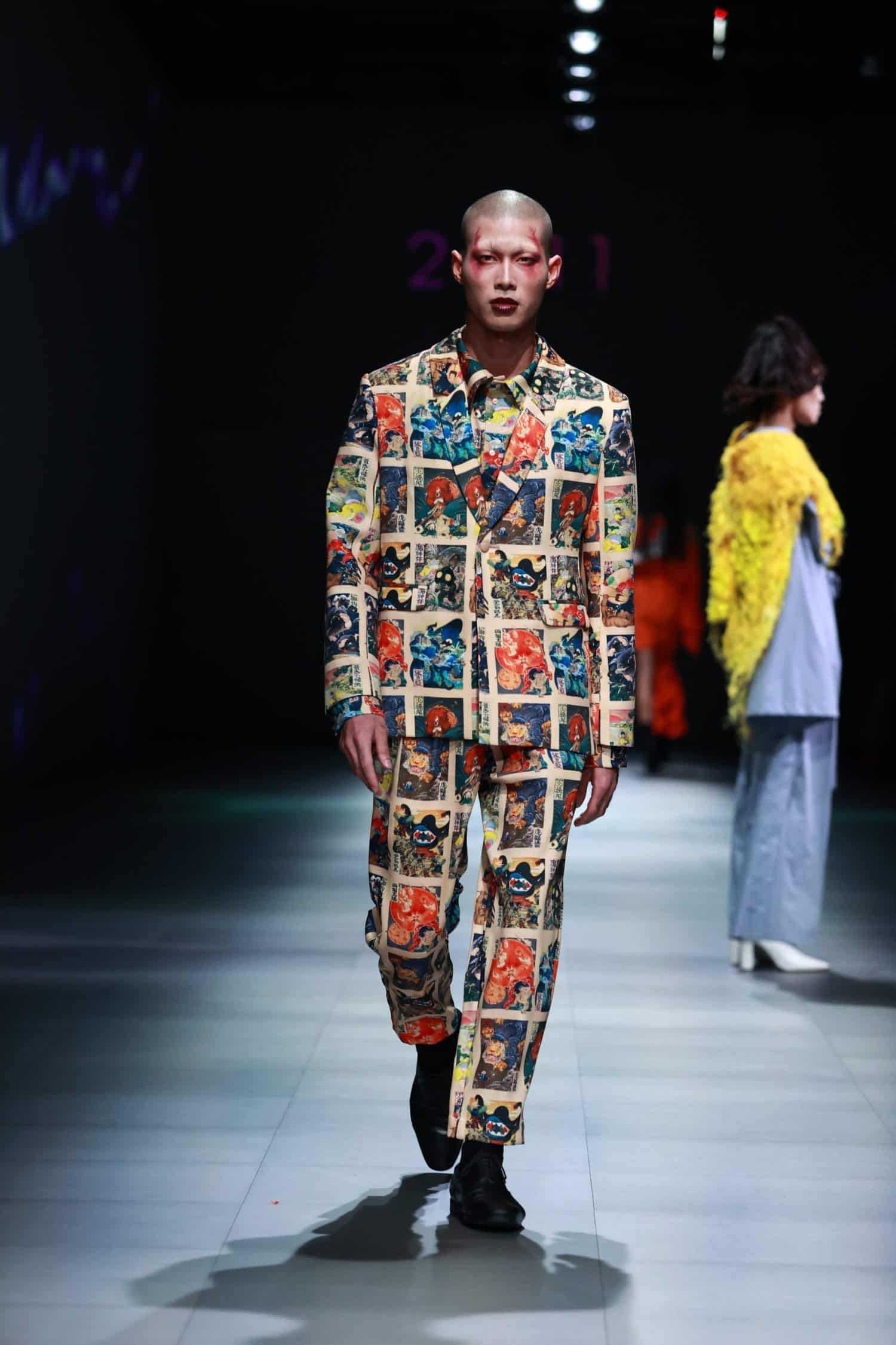 Taipei Fashion Week is known as a programming event where tech and fashion collide, and the six designers who took part integrated digital technology to redefine the relationship between fashion and art. As such, the brands were paired up with six groups of artists—AUSTIN.W with artist, BP-Billy; C jean with artist, Ching-Lin Chen and Yu-Hsiu Ma; #DAMUR with abstract painting artist, Wu Tung-Lung; INF with illustrator, Chiaos; UUIN with mosaic artist, Chiang, Kai-Chun; and JUST IN XX with Taiwan contemporary art master, Paul Chiang, resulting in a vivid display of museum-worthy runway looks.