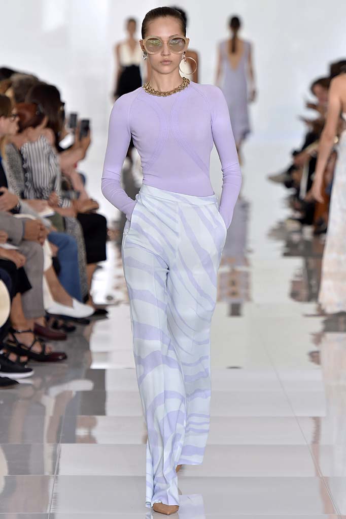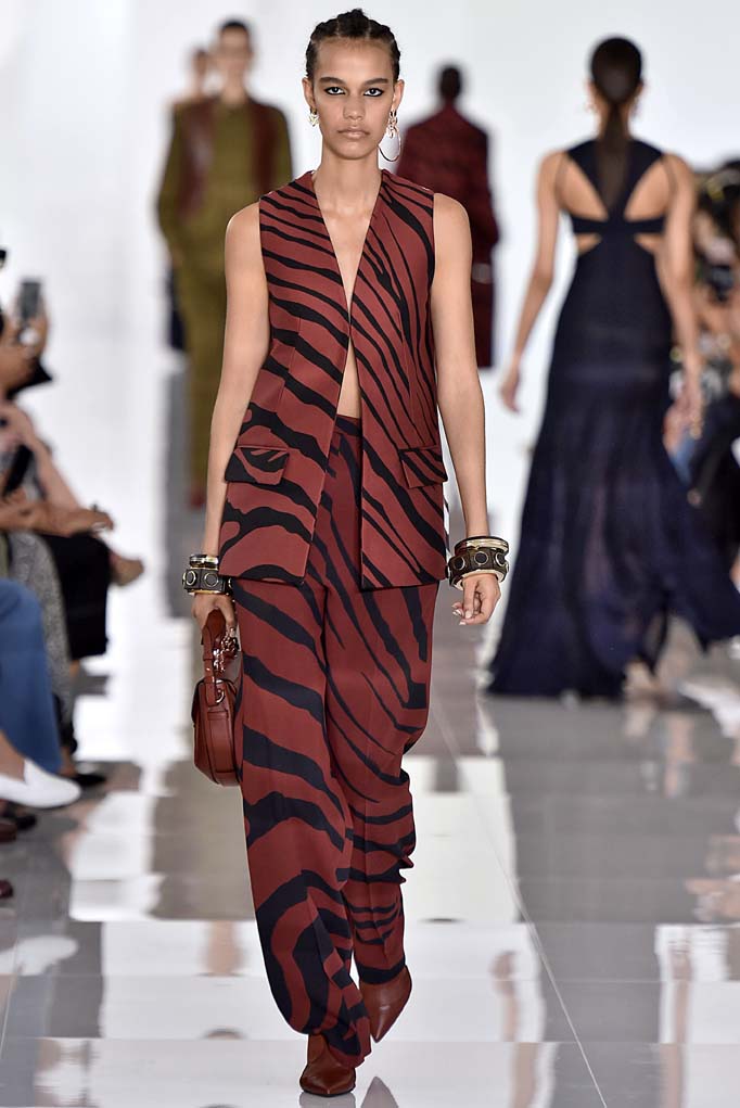 It’s a new era at Cavalli. After the departure of Peter Dundas, who seemed to be Cavalli’s most obvious successor, the house tapped Paul Surridge, a menswear designer who has held roles at minimalist brands like Calvin Klein and Jil Sander. Choosing an unexpected behind-the-scenes designer has proven to be enormously profitable for brands like Gucci, and here it would appear that Cavalli might have just embarked on a bright and rather sleek new path. Surridge rid the Cavalli runway of all the slink and overt sex appeal and instead used elements of the brand’s DNA—most visibly the zebra print—and toned it down by accenting sophisticated and elegant silhouettes with the pattern that screamed a certain kind of confidence that didn’t include flesh flaunting. The eveningwear that did expose some limbs or mid sections did so through mesh or with contrasting long sleeves. While we applaud, only time will tell whether or not Cavalli’s longtime clientele will also wish to clean up their act. In the meantime, a whole new list of deep pockets will likely be taking note.