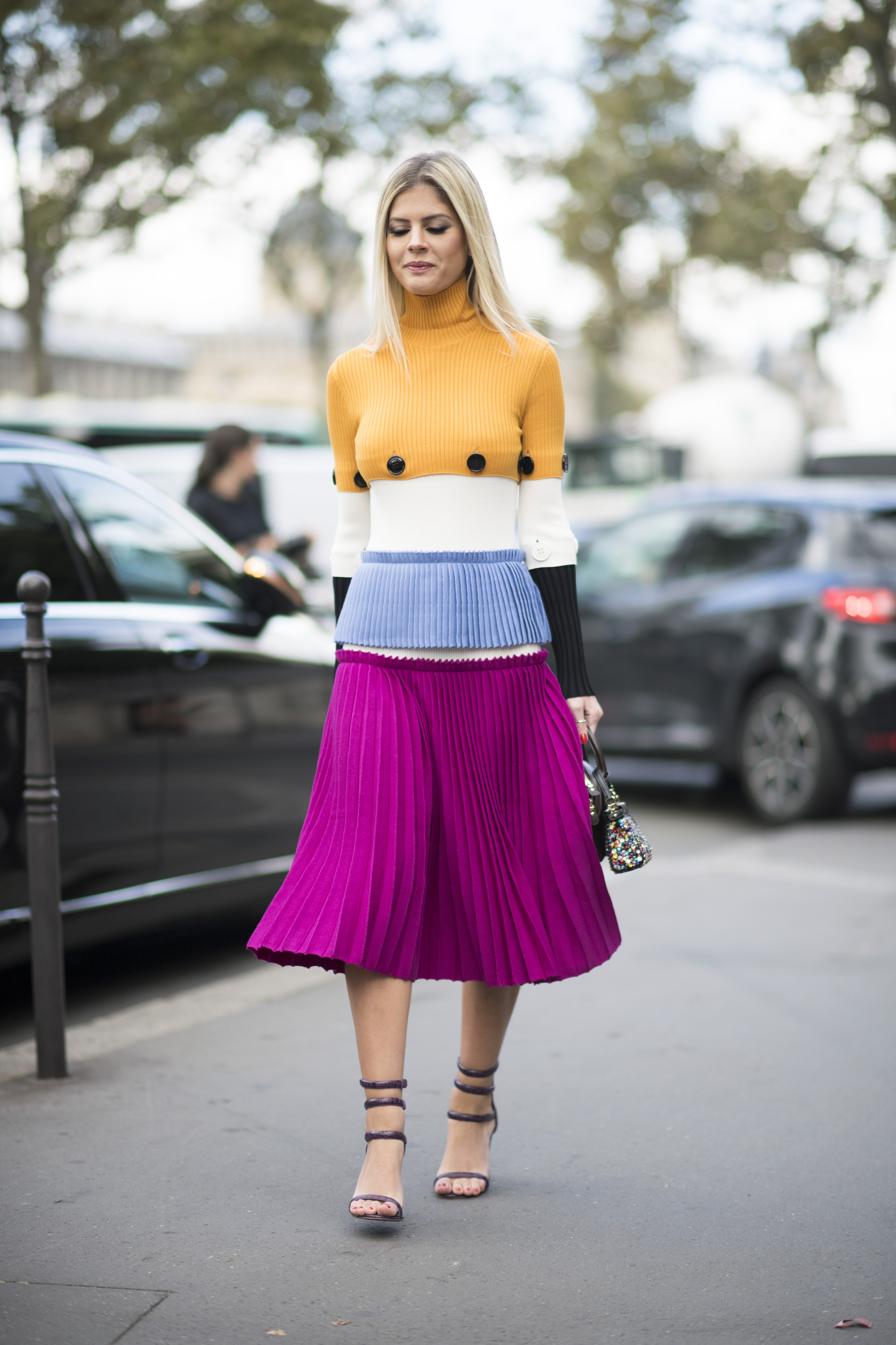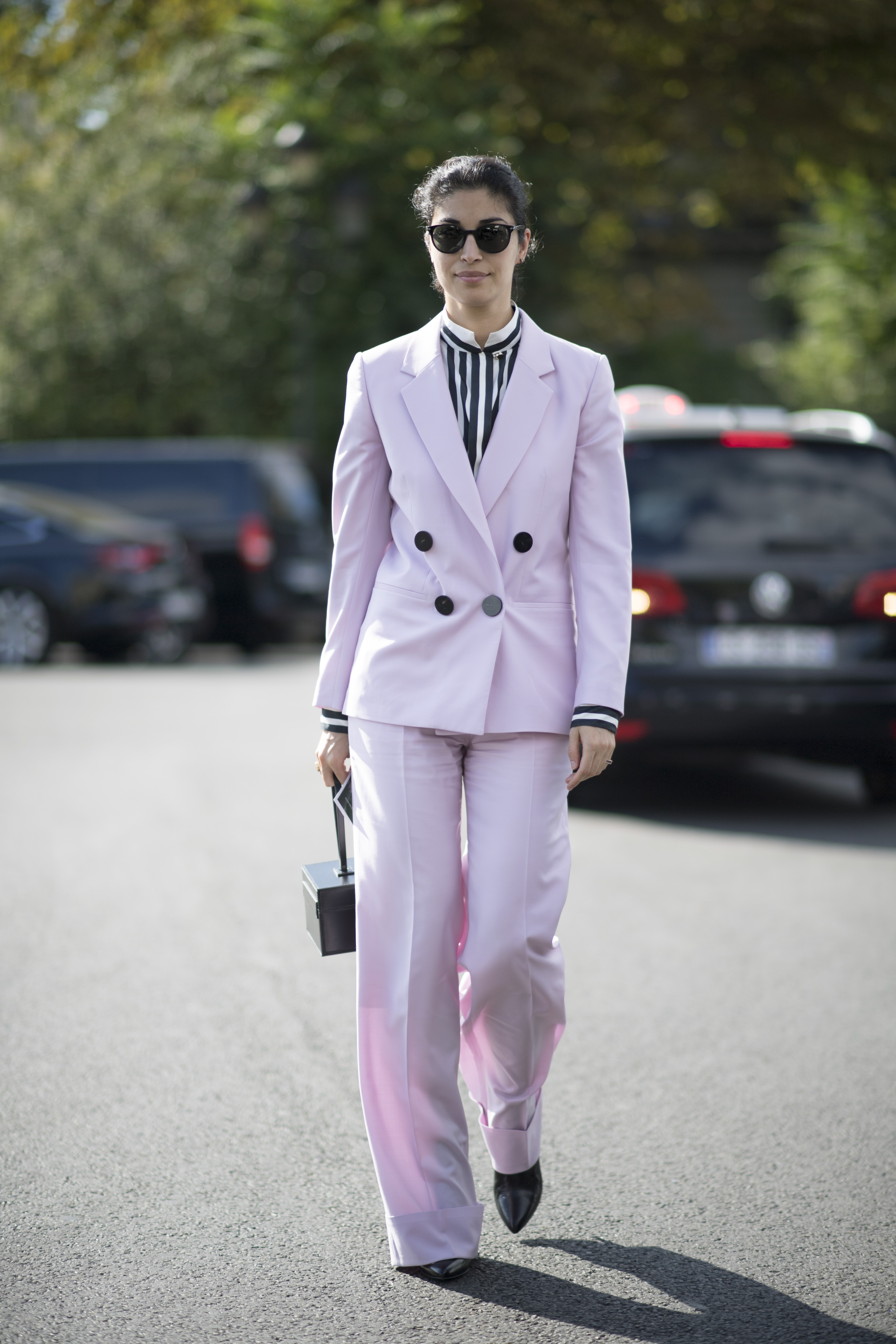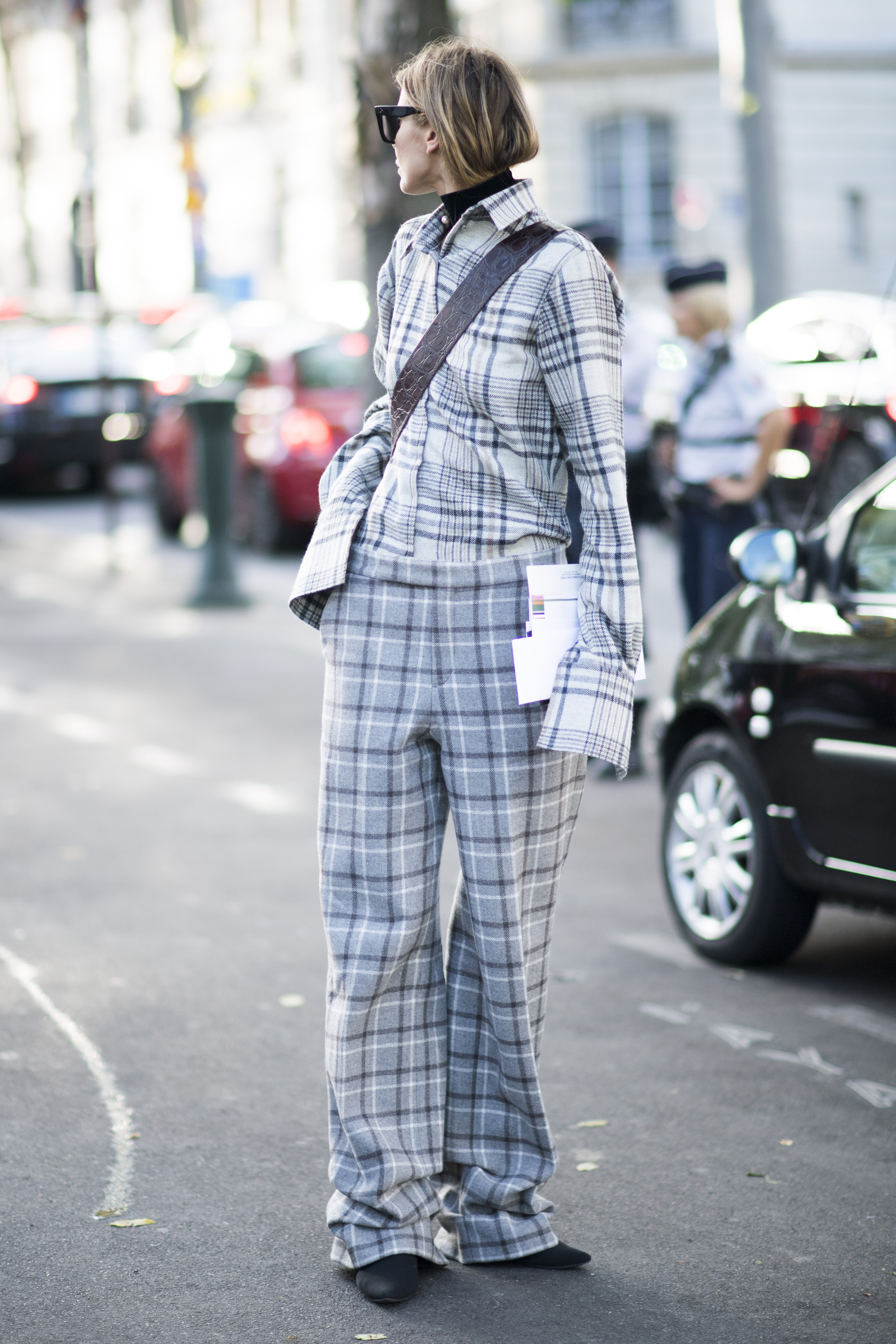 Another day of Paris Fashion Week, another excuse to trot out your fashion finery. Today’s moments include pastel suiting (as seen on Caroline Issa), geometric mini-bags, last season’s colorful Ferragamo ensemble, and Giovanna Battaglia in a fresh-from-the-presentation look from her sister. Menswear elements mostly reigned supreme, and the loudest came in an oversized check version. Candela Novembre and Romee Strijd looked Parisian chic in their monotone ensembles topped off with colorful bags. What’s your favorite off-the-runway look?