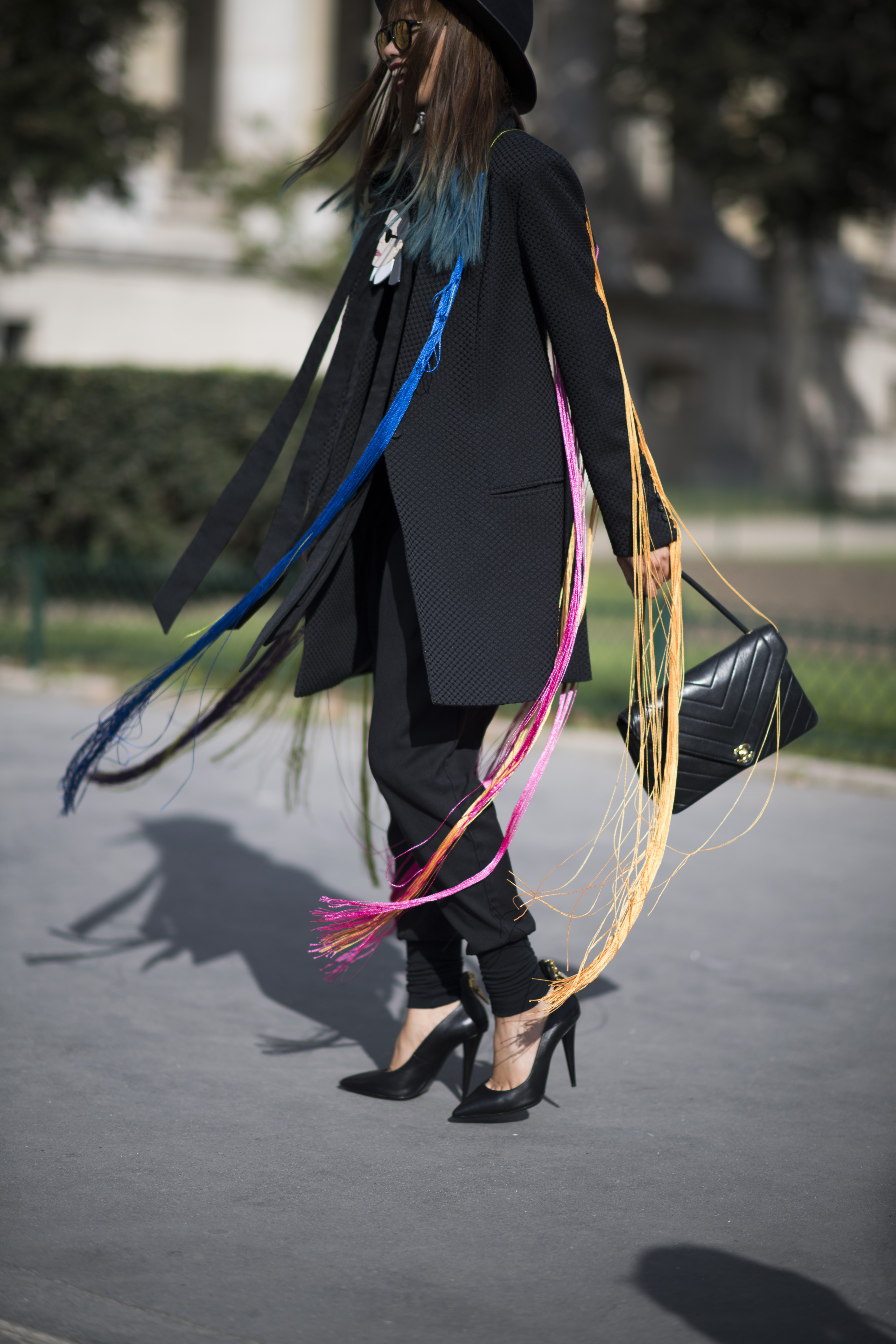 - PARIS, FRANCE – SEPTEMBER 28:A guest seen during Paris Fashion Week Spring/Summer 2017 in the streets of Paris on September 28, 2016 in Paris, France. (Photo by Timur Emek/Getty Images)