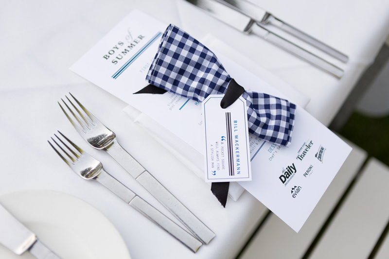 The first annual Boys of Summer event at c/o The Maidstone was on the books long before the SCOTUS gay marriage ruling, but it gave one more reason for the Hamptons’ most stylish gents to celebrate on Friday night. The intimate dinner was hosted by Condé Nast Traveler publisher Bill Wackermann (wearing Mr. Turk pants) and The Daily Summer, to celebrate four men with impeccable style. So, who made the inaugural list? GQ‘s Bobby Graham, Corcoran Group’s Noble Black, event planner/model/America’s sweetheart Eric Rutherford, and Men’s Style Guide founder Greg Tinari. What’s Wackermann’s definition of a stylish lad? “Style comes from confidence, from feeling comfortable in your own skin, and from knowing what looks good on you, and then pushing the boundaries.” One look you’ll rarely see him in during the summer months is all black, he tells us. A summer essential in his Sag Harbor closet? “I know white pants have become sort of a cliche, but guess what, they work. So, I probably have about 8 pairs.”