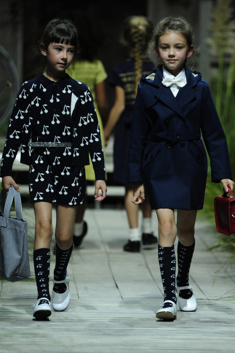 We spotted W magazine editor-in-chief Stefano Tonchi perched front row surveying his next buy for his two little girls. “I thought it was incredibly refreshing to see some young women without attitude enjoying the runway,” said Tonchi. “These are some of the few models I’ve seen this week actually smiling. I thought it was a great celebration of Bonpoint’s heritage and where they’re bringing the company. Seeing all of these kids made me a little nostalgic for my own children, because I’ve been on the road. I’ve been showing pictures of them to everyone.” Putting the show in a broader context, Tonchi added that perhaps we could learn a thing or two from shows like these. “There was lots of personality, which is sort of interesting, because somehow models today that can show that kind of personality or make a little bit of a clown of themselves—I’m thinking of Cara Delevingne—are the winners. I think maybe everyone should channel their inner kid a little bit more.” We do agree!