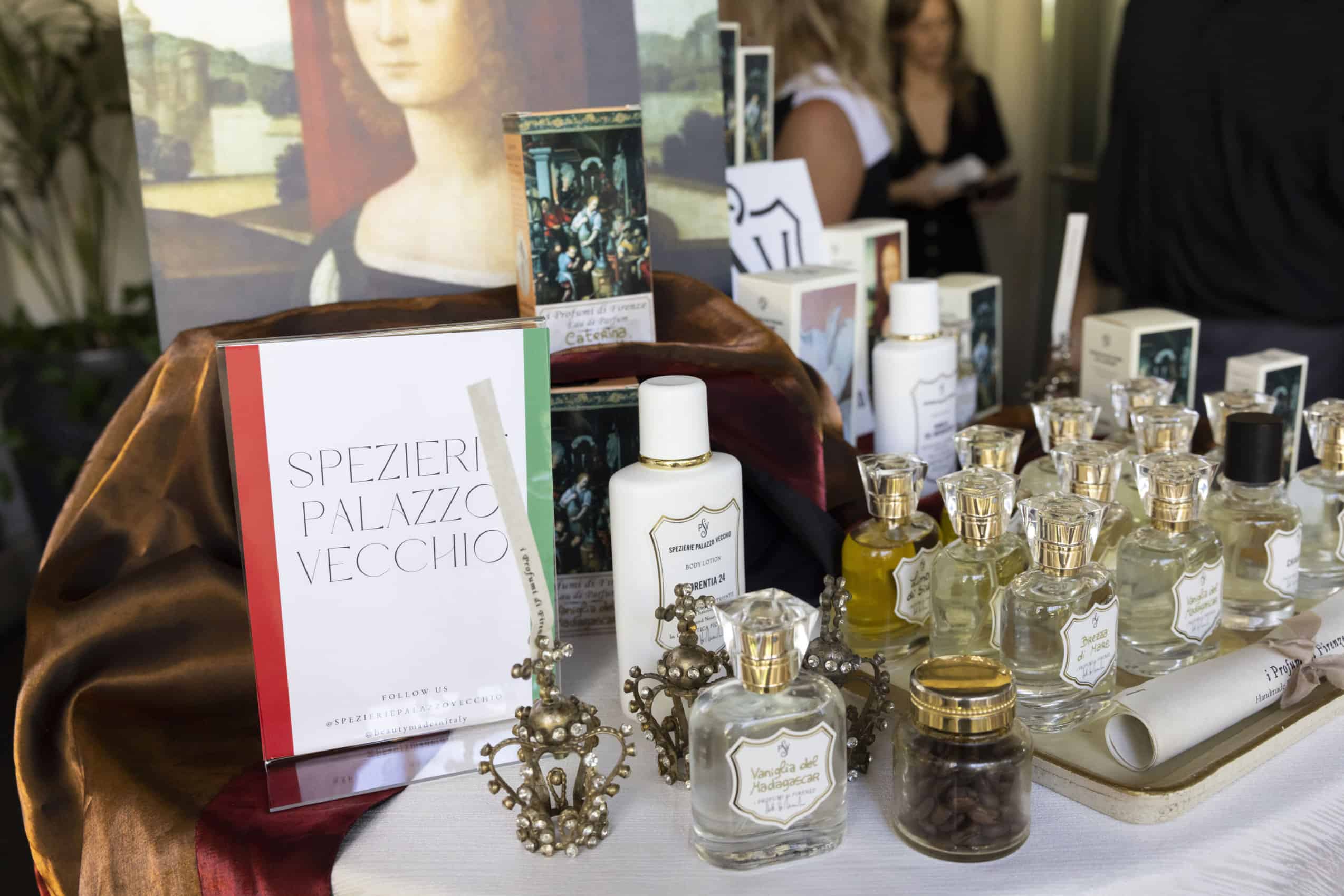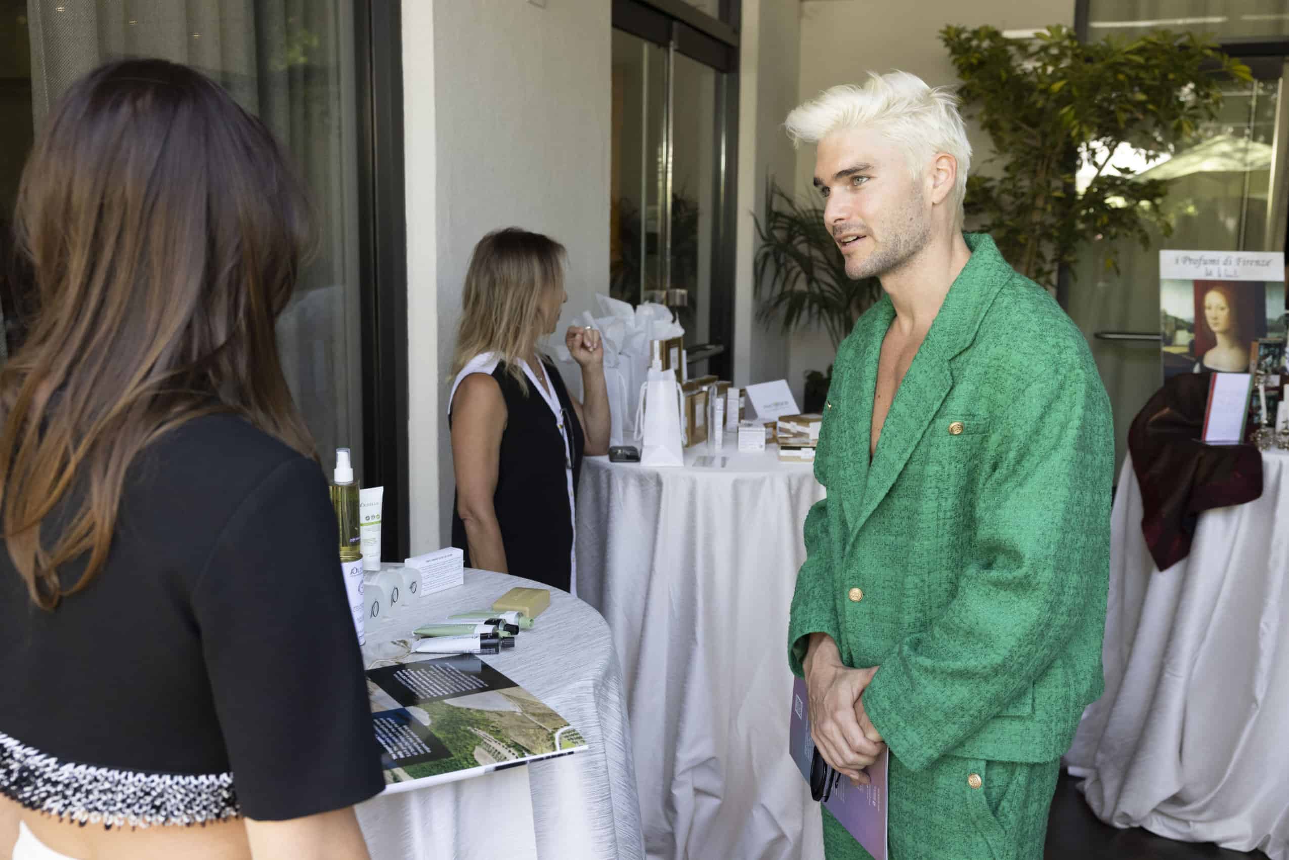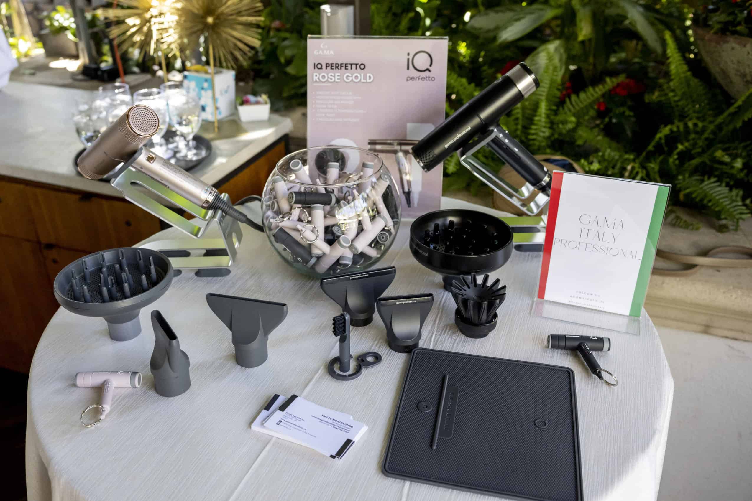 Upon arrival, attendees met with founders or representatives from Coquillete, Ernesi 1978, GA.MA Italy Professional, Hair Company Professional, Kaaral, Olivella, Perlier, Physio Natura, PhytoBios, and Sperizerie Palazzo Vecchio to hear more about the respective brand stories and backgrounds. Guests spritzed fragrances, tried out lotions, and felt how lightweight hair tools were, while enjoying a momentary transport to Italy thanks to the eatery’s lemon trees and pretty floral-laden terrace area. [Find out more about the brands here and here!]