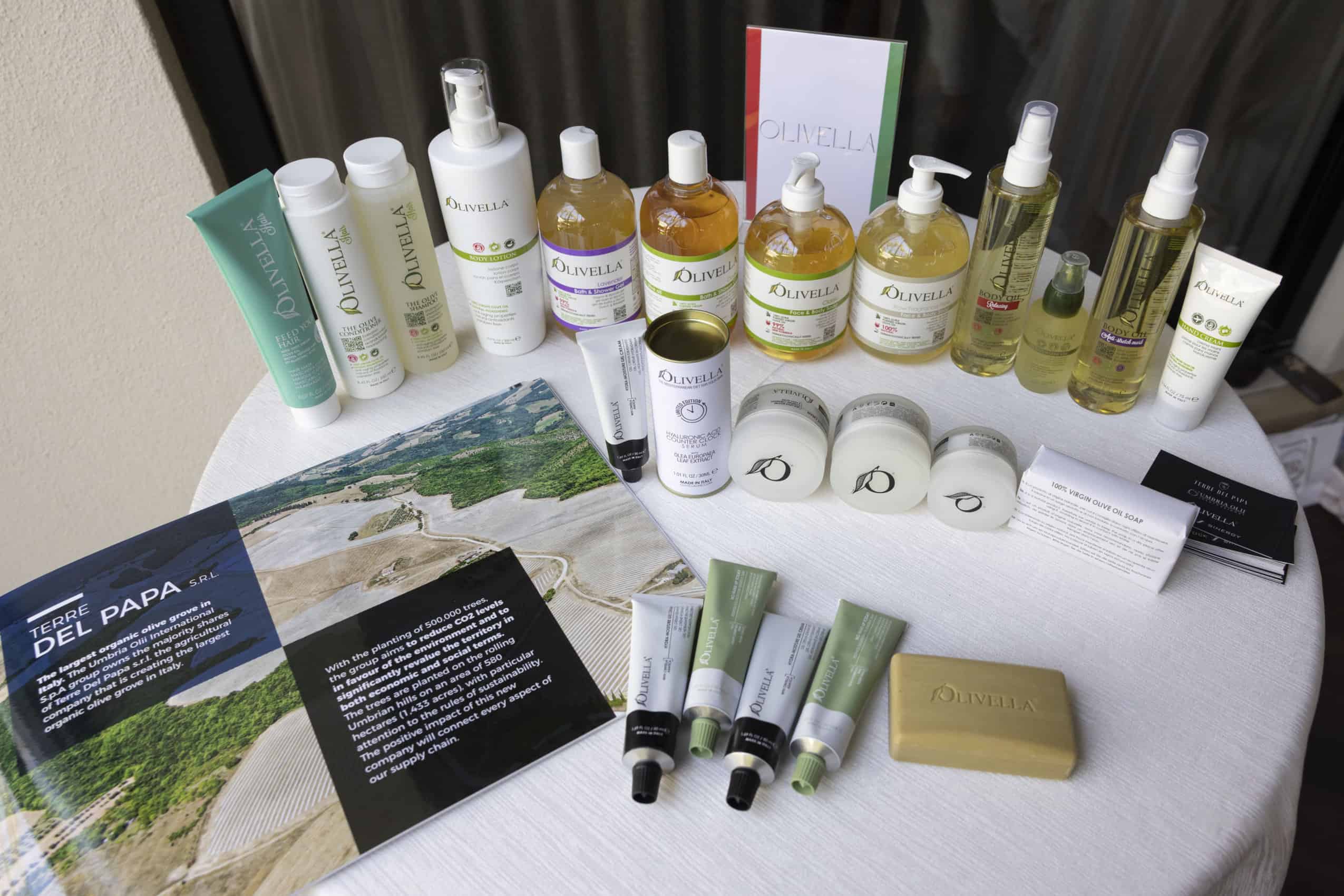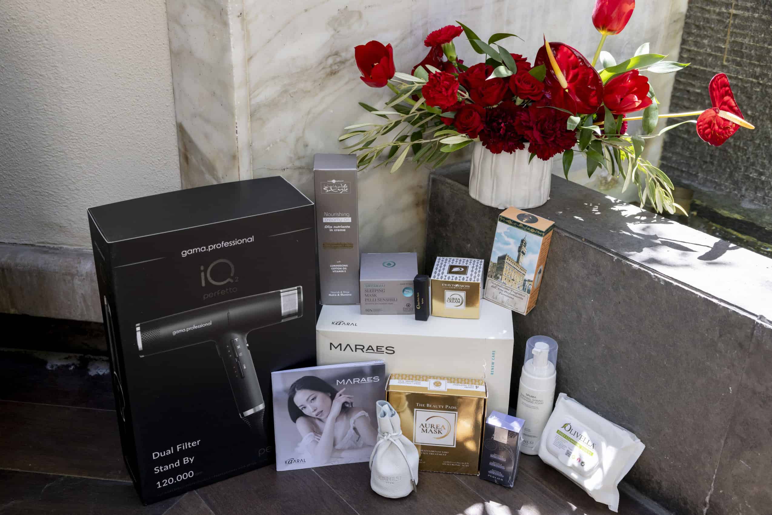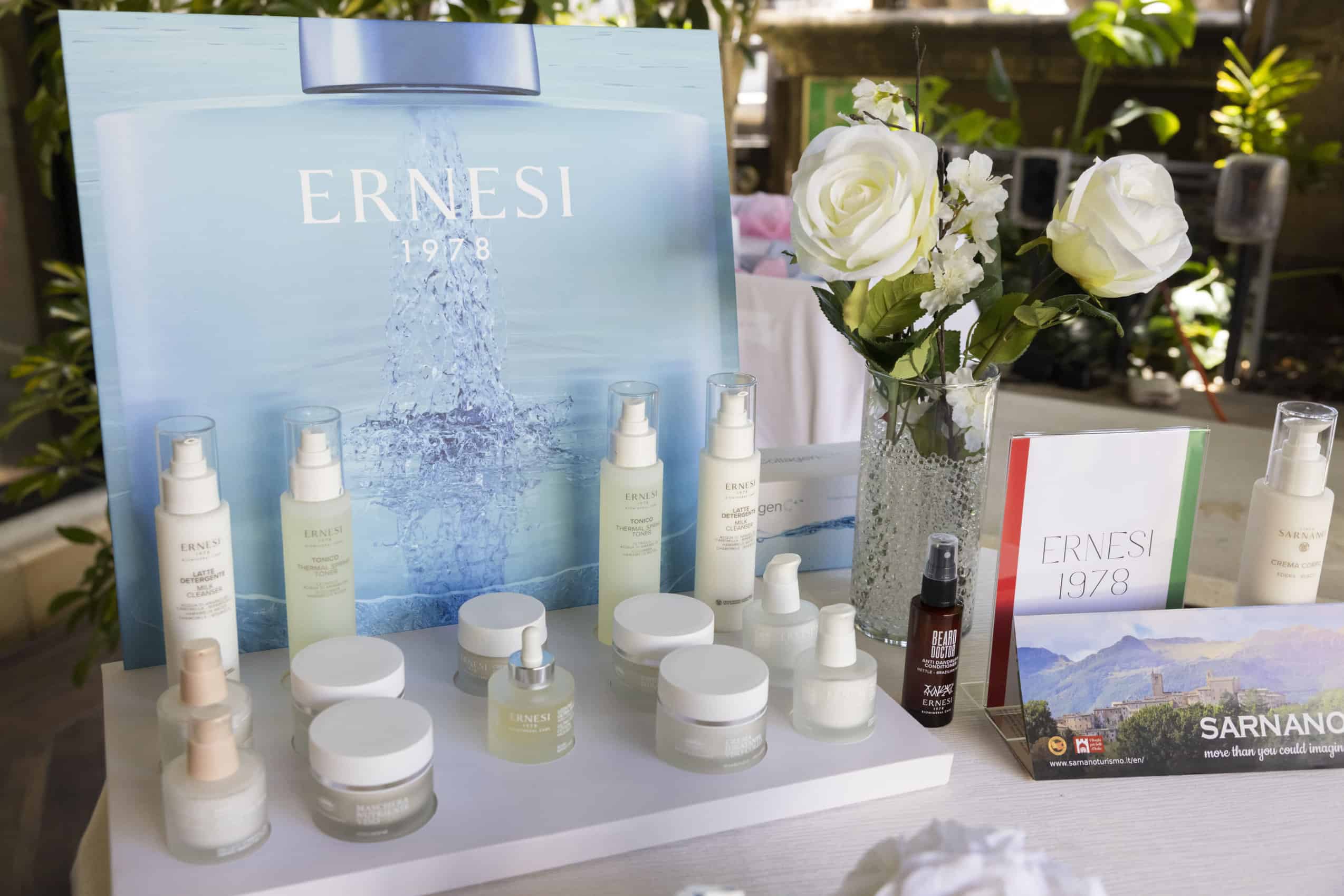 Upon arrival, attendees met with founders or representatives from Coquillete, Ernesi 1978, GA.MA Italy Professional, Hair Company Professional, Kaaral, Olivella, Perlier, Physio Natura, PhytoBios, and Sperizerie Palazzo Vecchio to hear more about the respective brand stories and backgrounds. Guests spritzed fragrances, tried out lotions, and felt how lightweight hair tools were, while enjoying a momentary transport to Italy thanks to the eatery’s lemon trees and pretty floral-laden terrace area. [Find out more about the brands here and here!]