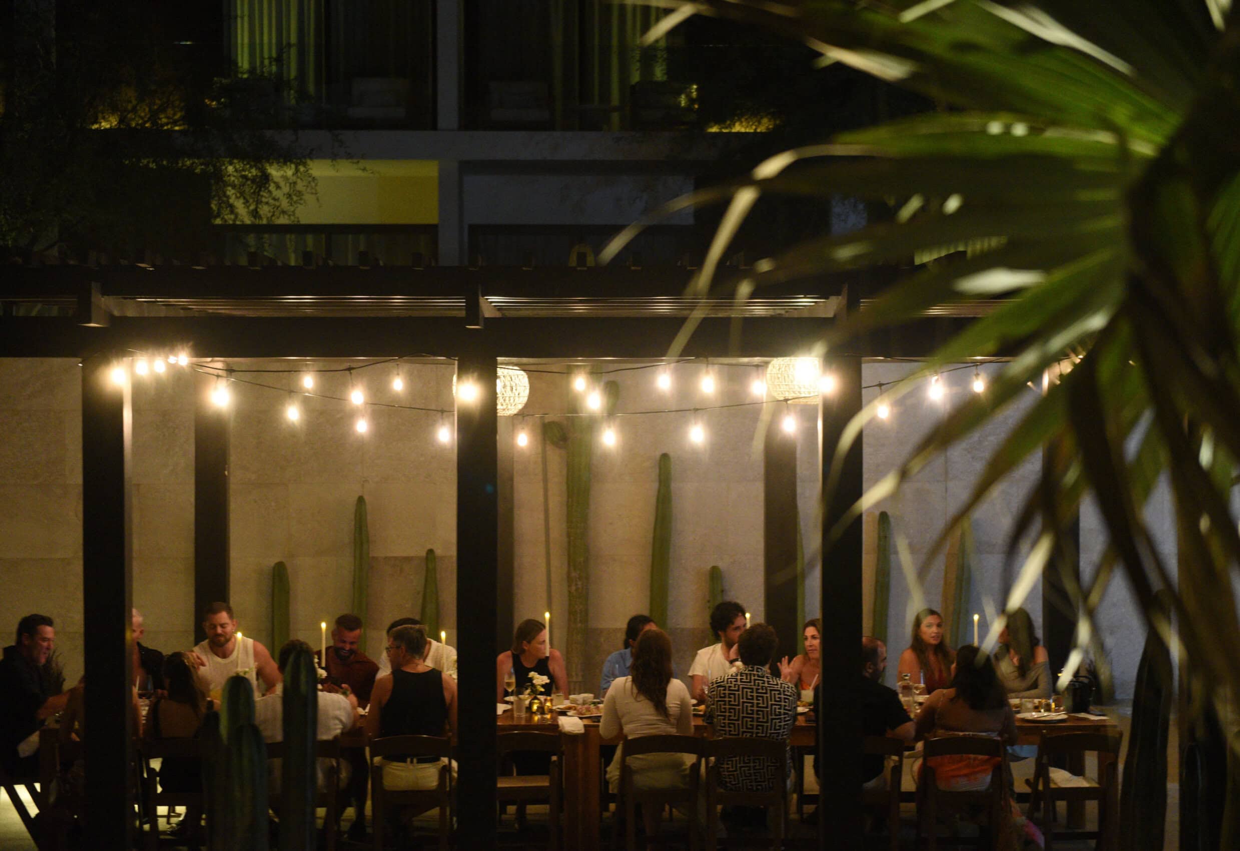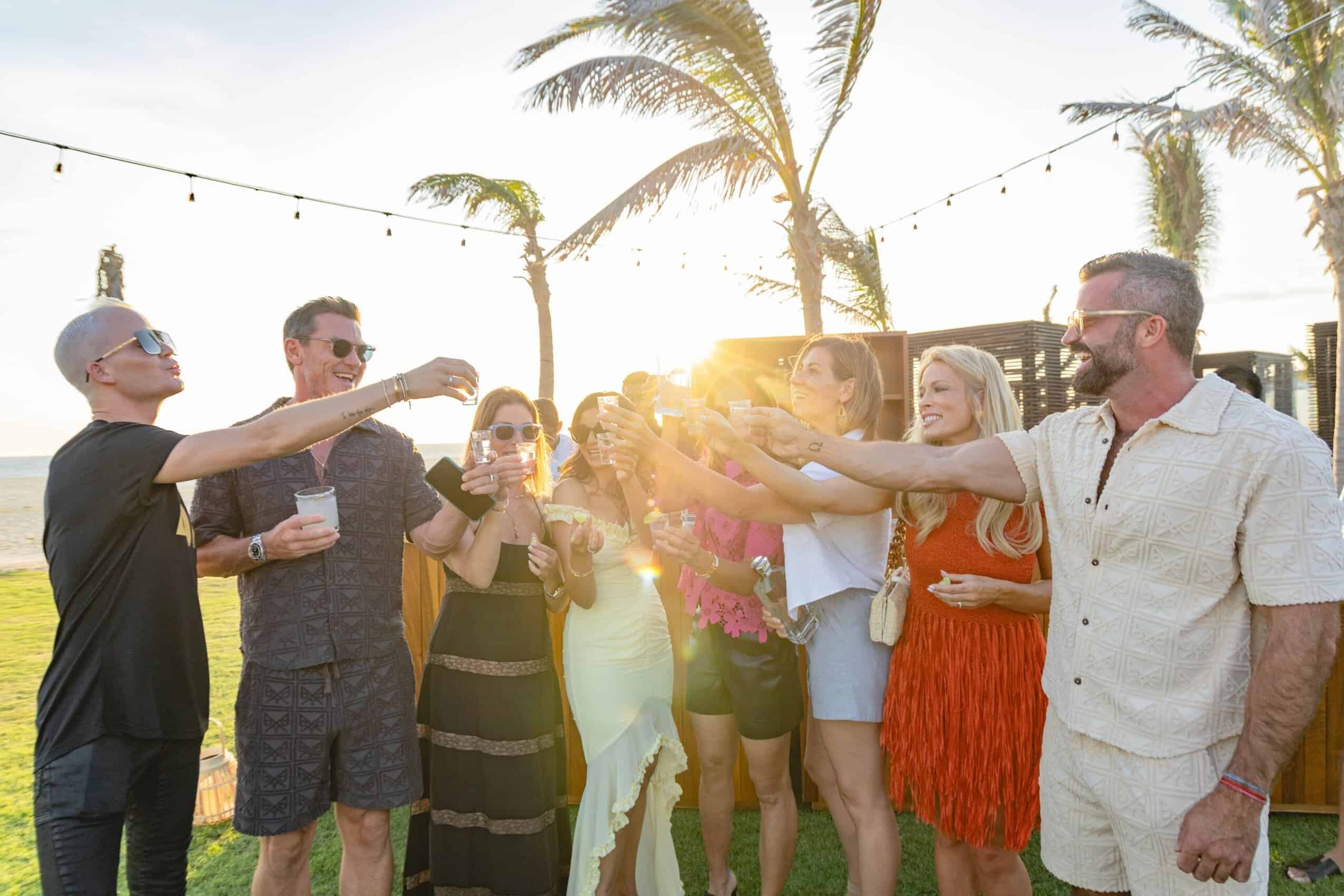After the styling sessions, guests gathered at Playa Bar for a beachfront Sunset Soirée presented by Chrome Horse Tequila. The headliner of the celebration was an elegant Saturday night dinner set in the private outdoor dining space at Yakusoku Garden. An elegant Cabo setting, soft lighting, candlelight and long table filled with laughter, great conversation and incredible food. It felt intimate, relaxed, and exactly the right note to end on. Guests dined on fresh mozzarella and tomato, Kobe beef tacos, guacamole, and Mexican shrimp while sipping on bespoke Chrome Horse Society tequila cocktails under the stars—including the Cool Chrome Cucumber Margarita, BDXY Breeze Paloma, and Hot Horse Spicy Margarita. The night culminated with a lively dance party at M Bar.
